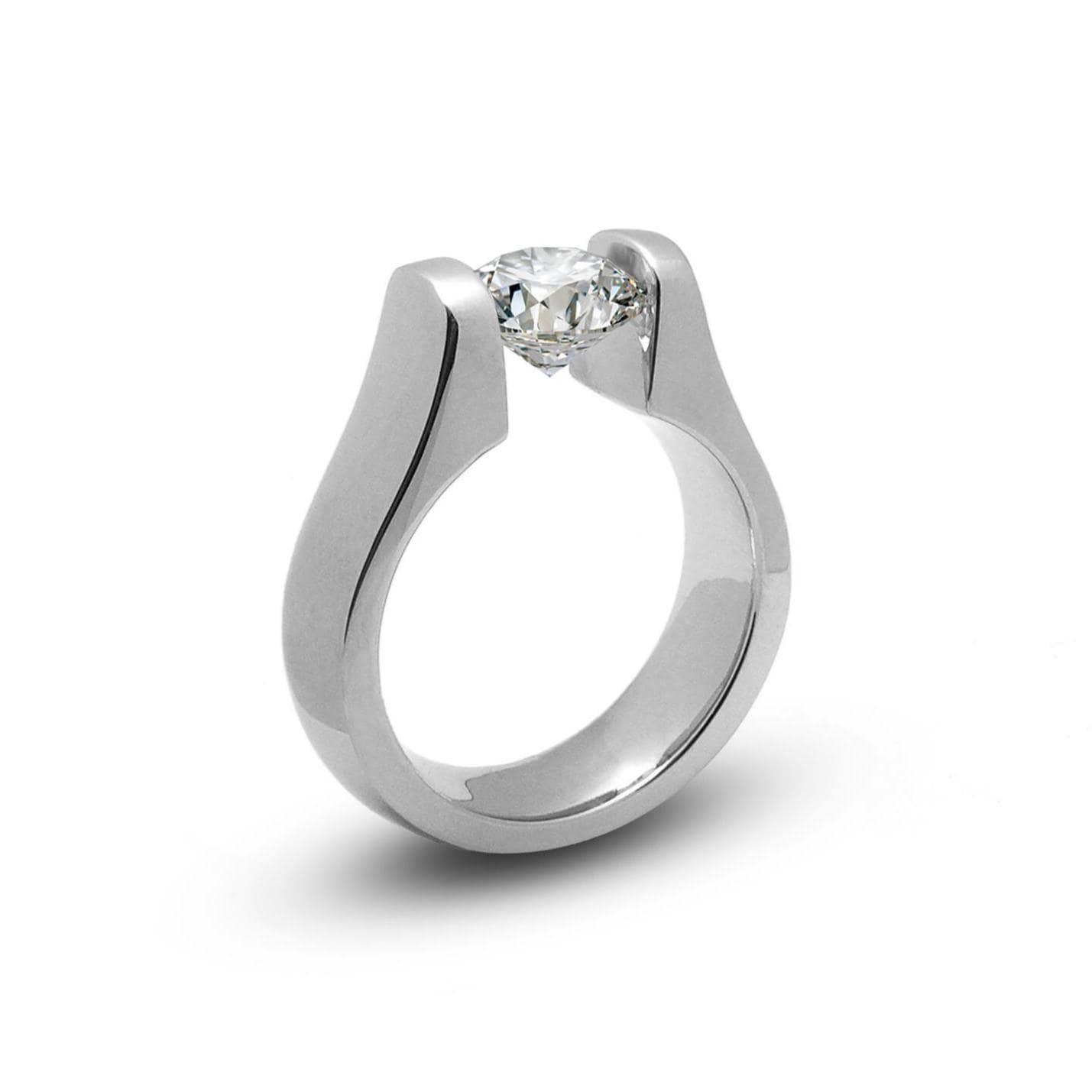 Timeless elegance meets modern minimalism in Taormina’s MAREA ring design. Crafted from sleek stainless steel, this ring features a subtly domed, high-set mounting that beautifully showcases a brilliant tension-set white sapphire, appearing to float weightlessly above the band. The MAREA ring blends refined simplicity with architectural elegance.