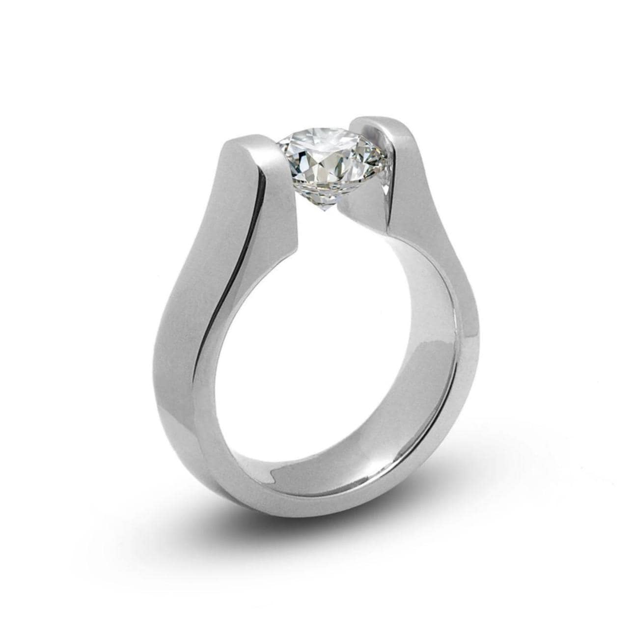 At its core is a striking White Sapphire, held in place by a precision tension setting—no prongs, no distractions. The gems appears to float in mid-air, adding a sense of lightness and visual intrigue to the ring’s solid structure.Each ring offers exceptional durability, hypoallergenic comfort, and a seamless silhouette that fits naturally into any modern wardrobe. With its smooth curves, tactile finish, and floating gem centerpiece, this piece captures the essence of intentional luxury.