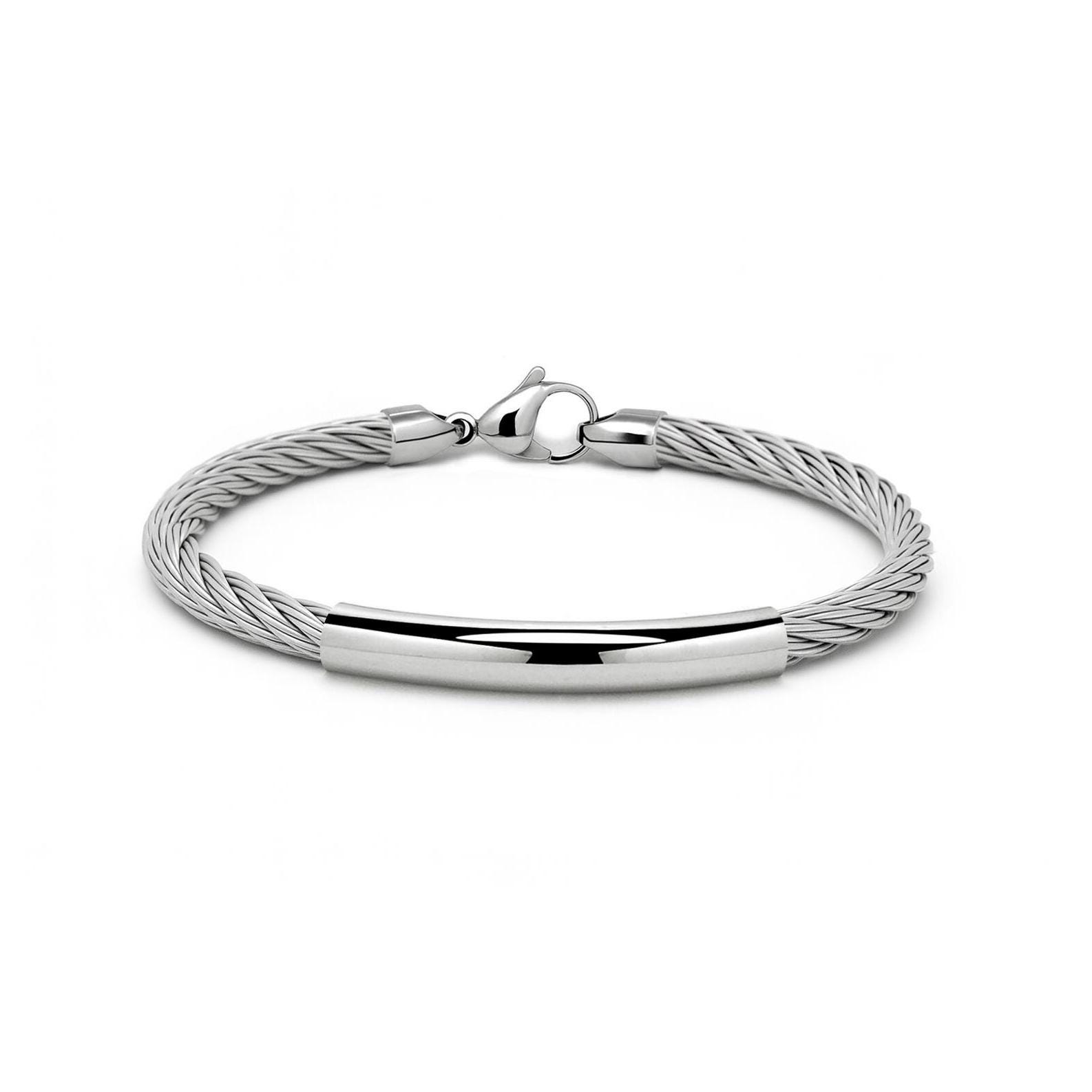 Bold in its simplicity, this handcrafted bracelet features a tightly braided 4mm cable construction, paired with a high-polish stainless steel bar—an essential contrast of texture and tone, delivering a modern industrial edge while maintaining a minimal, gender-neutral aesthetic. .