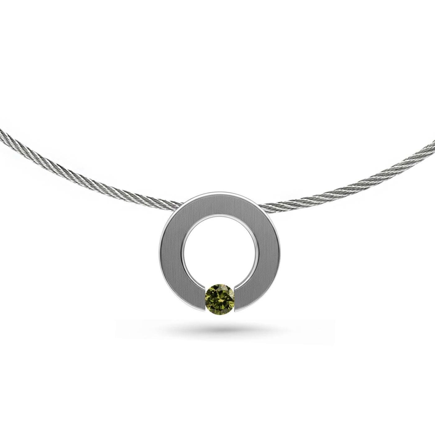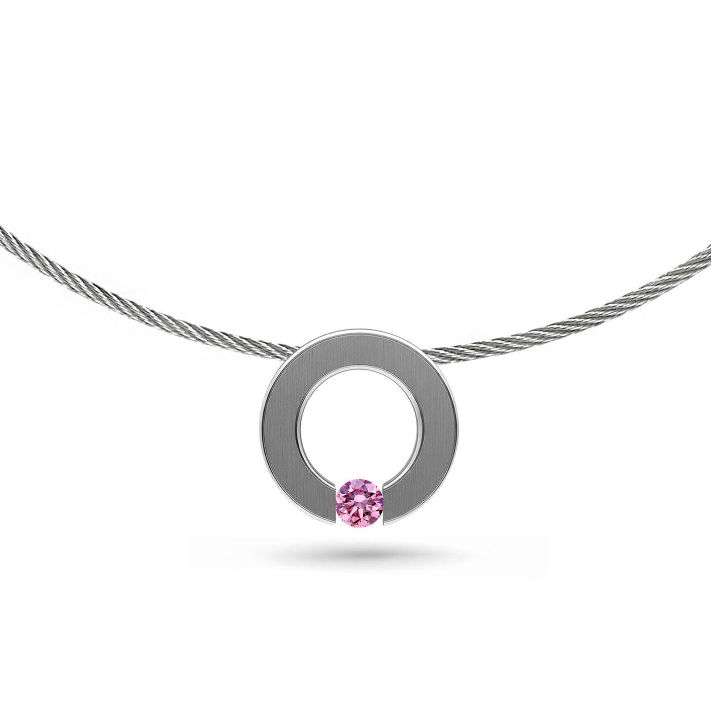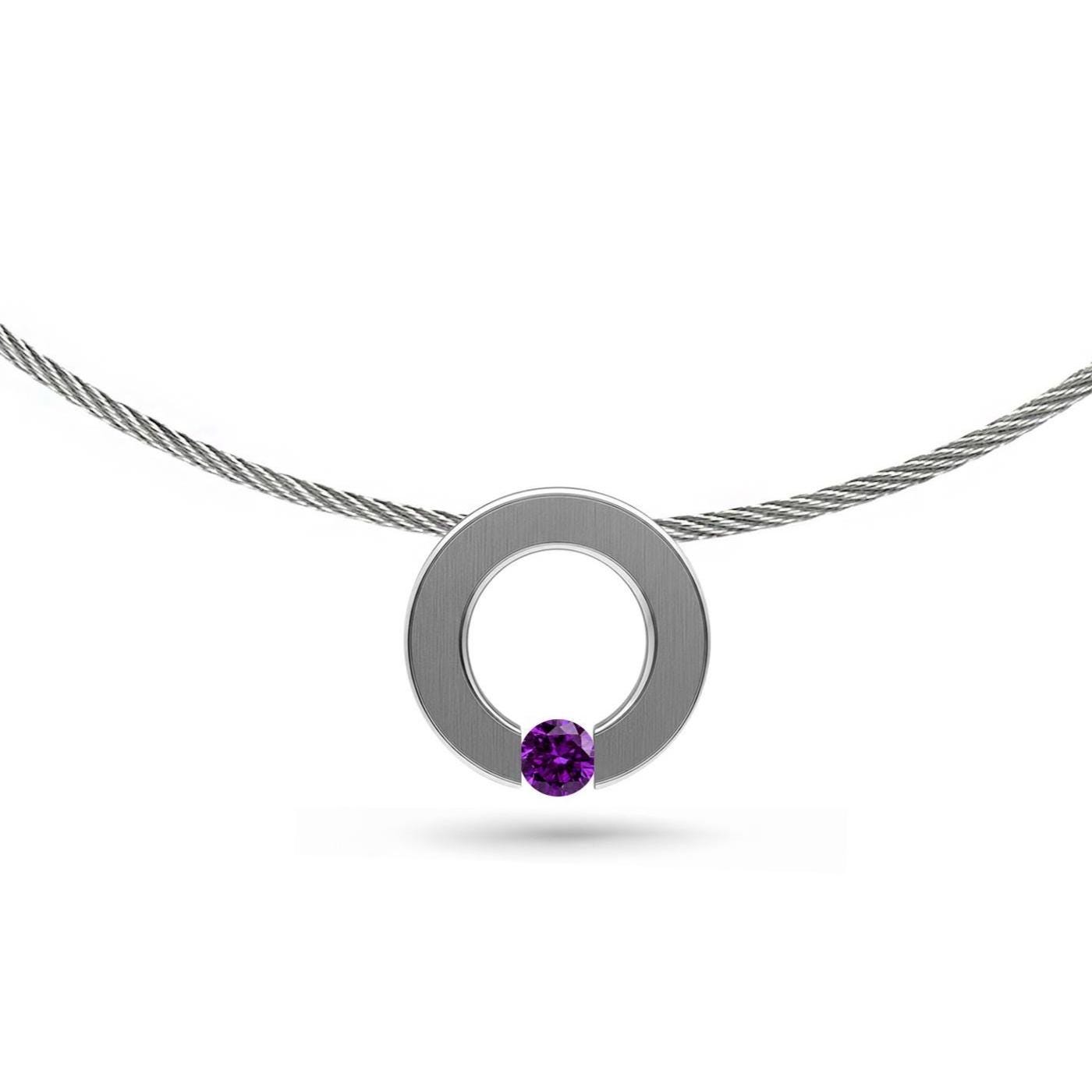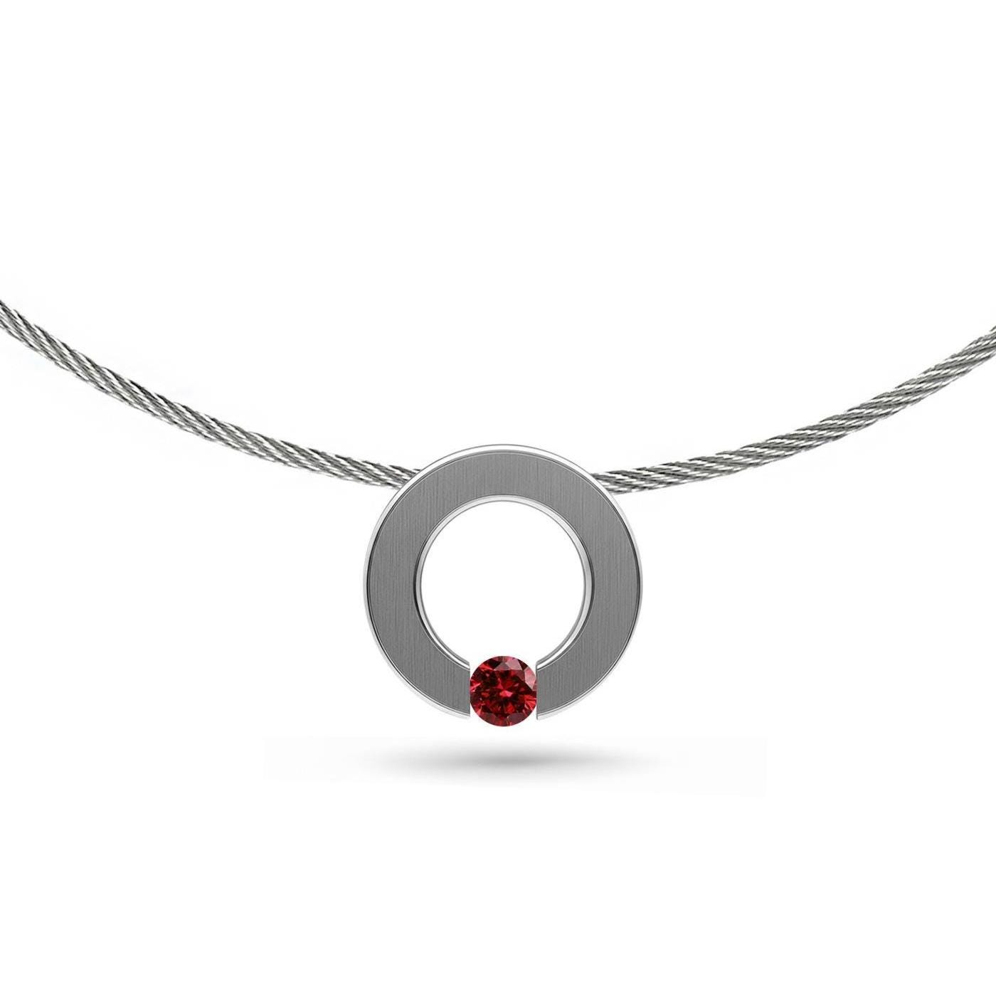 Radiant and refined, the Abbracci pendant captures the quiet poetry of the night sky. A perfectly round gemstone, tension-set within a brushed with polished edges stainless steel flat O-ring, glows at the heart of the design—an emblem of balance, purity, and enduring elegance.
