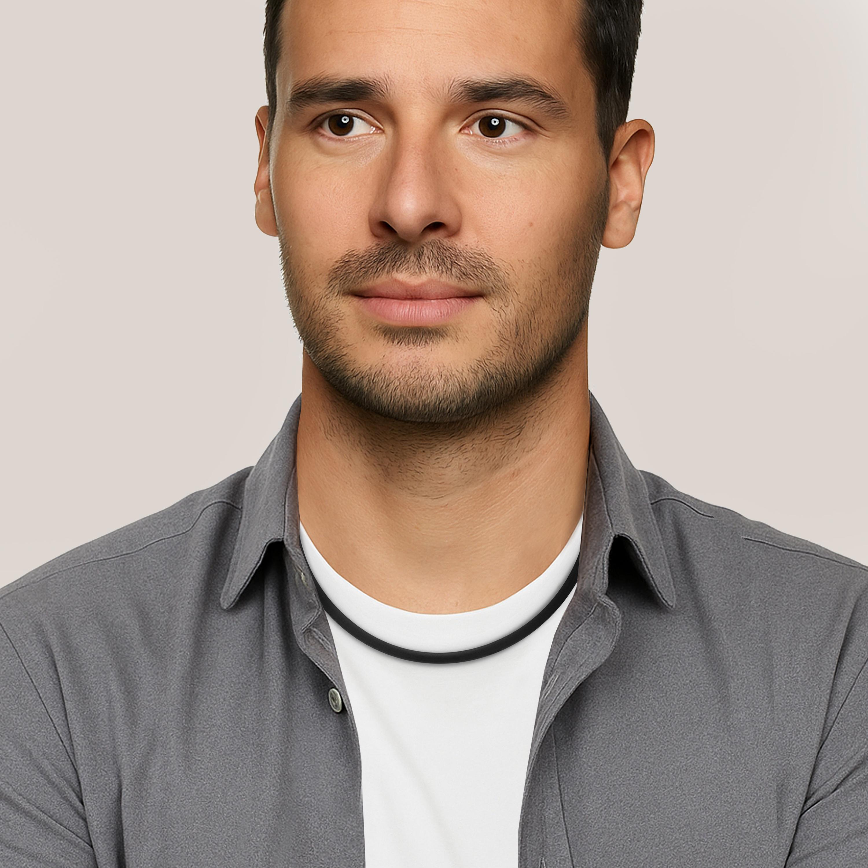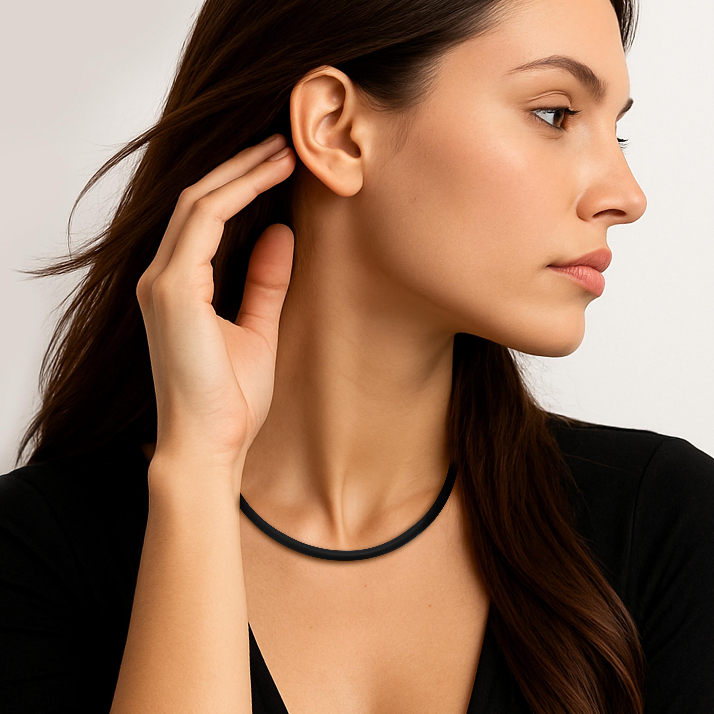 A bold yet minimalist piece, this necklace features a 4mm matte black silicone rubber cord expertly paired with our high-precision, sturdy Bayonet Twist Clasp, a signature feature of this design, with a engineered mechanism. This closure system, designed and crafted entirely in-house by Taormina, is a proprietary piece of engineering that guarantees an architectural, secure, and seamless hold, fully reflecting our commitment to minimalist edge design and superior functionality