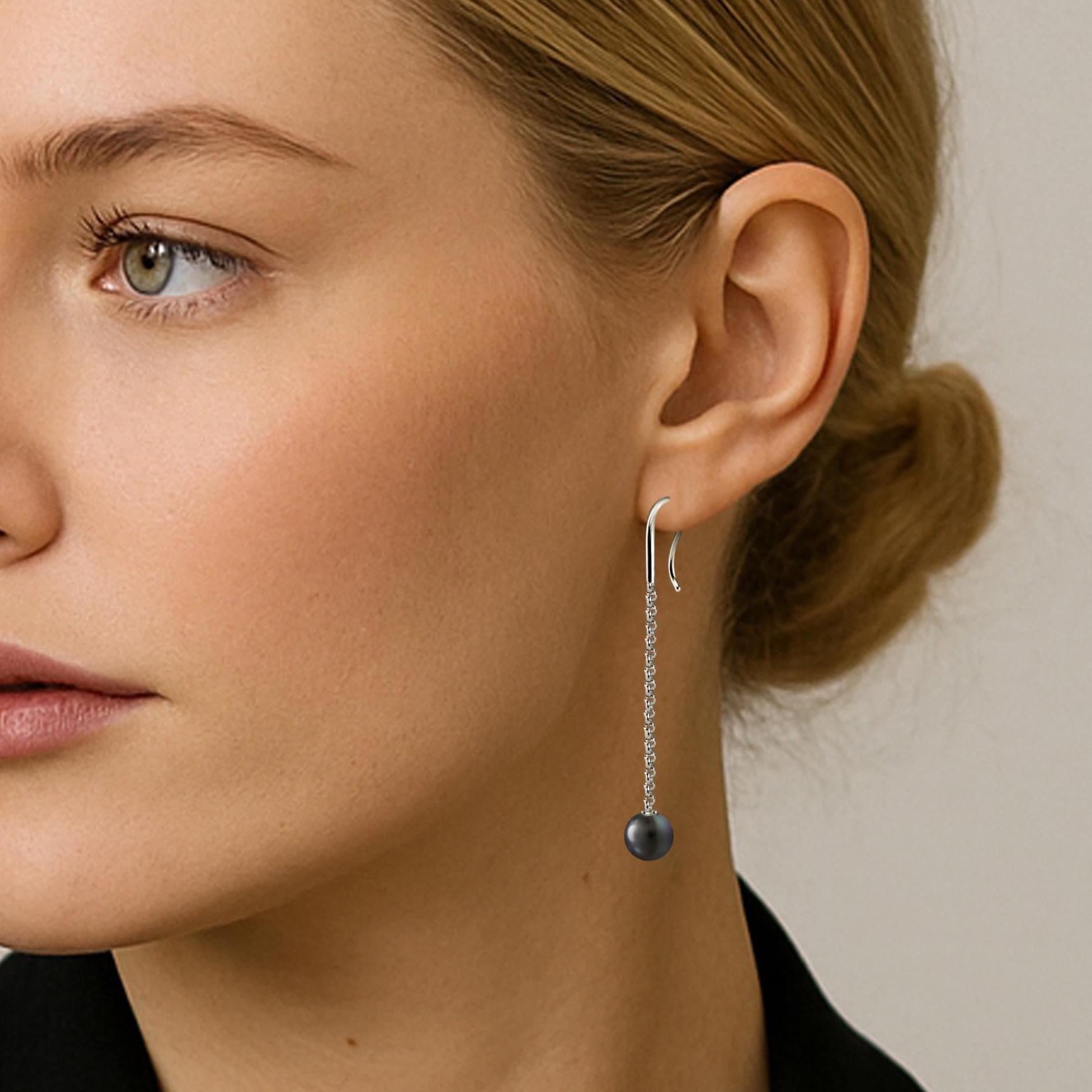 Refined and contemporary, these Lucia minimalist drop earrings feature a sleek stainless steel rolo chain and hook, paired with a natural black pearl. The pearl is securely fixed at the base, adding a bold yet elegant statement to your look. A perfect balance of clean design and distinctive charm—crafted for those who appreciate subtle luxury and timeless style.