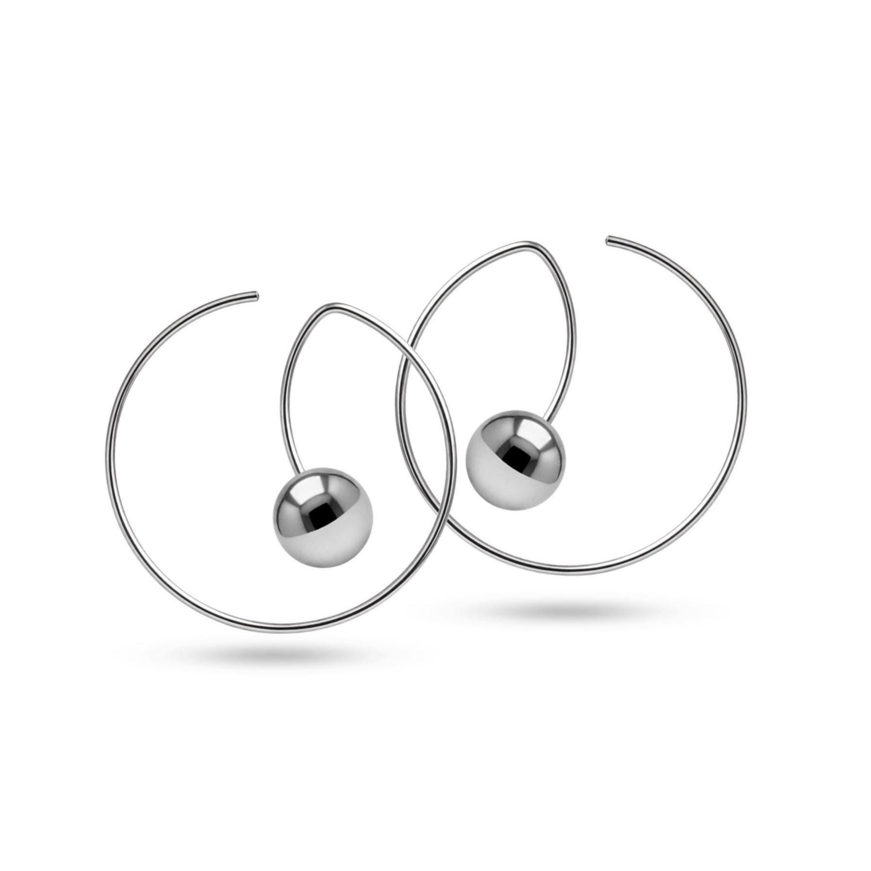 The slender, sweeping and sensuous round Taormina FILO earrings are minimal yet playful at the same time. Wear these on any occasion you like. The light and delicate ear jewelry traces a bold line of motion comparable to an expressive, yet simple pencil drawing: dynamic, generous, and light. A luminous stainless steel sphere anchors the end of the wire, offering a refined contrast to the minimal metal curve. The result is a floating, sculptural look that plays with asymmetry and lightness. Ideal for those who appreciate modern jewelry with architectural edge.