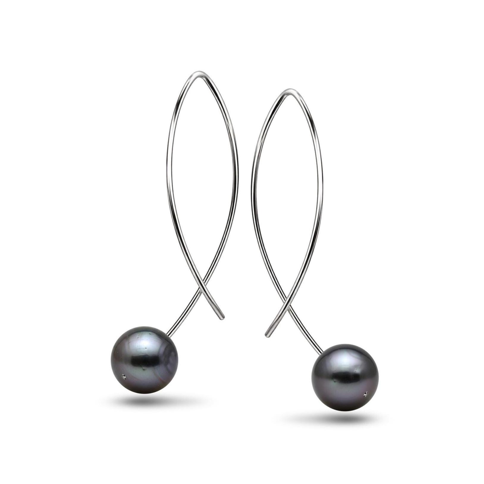 The Contrast of Materials A mysterious, hand-selected Black Pearl anchors the terminal of the wire, showcasing a deep, iridescent luster that shifts beautifully with the light. This organic element provides a sophisticated, moody counterpoint to the precision-polished surgical steel curve, creating a floating, sculptural aesthetic.