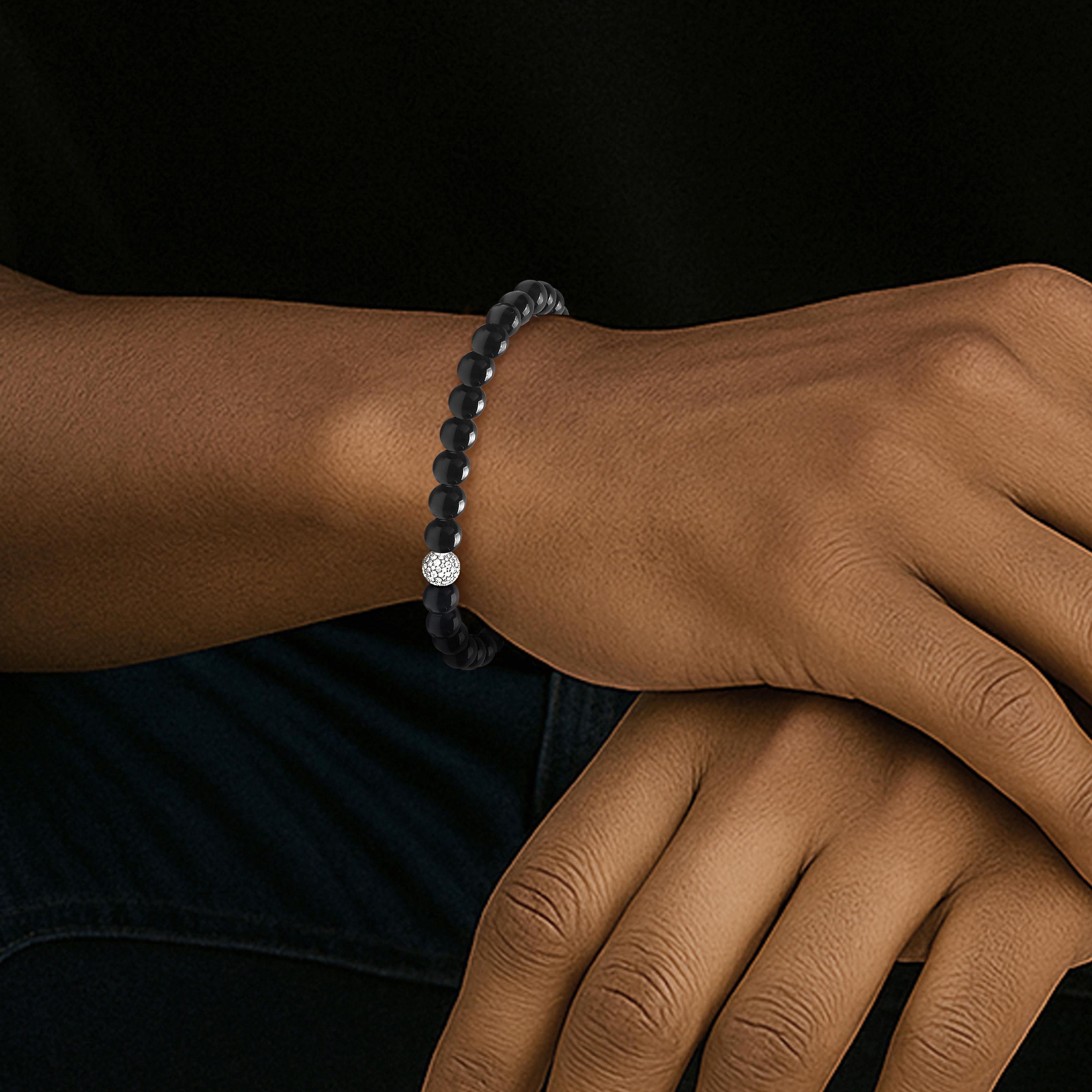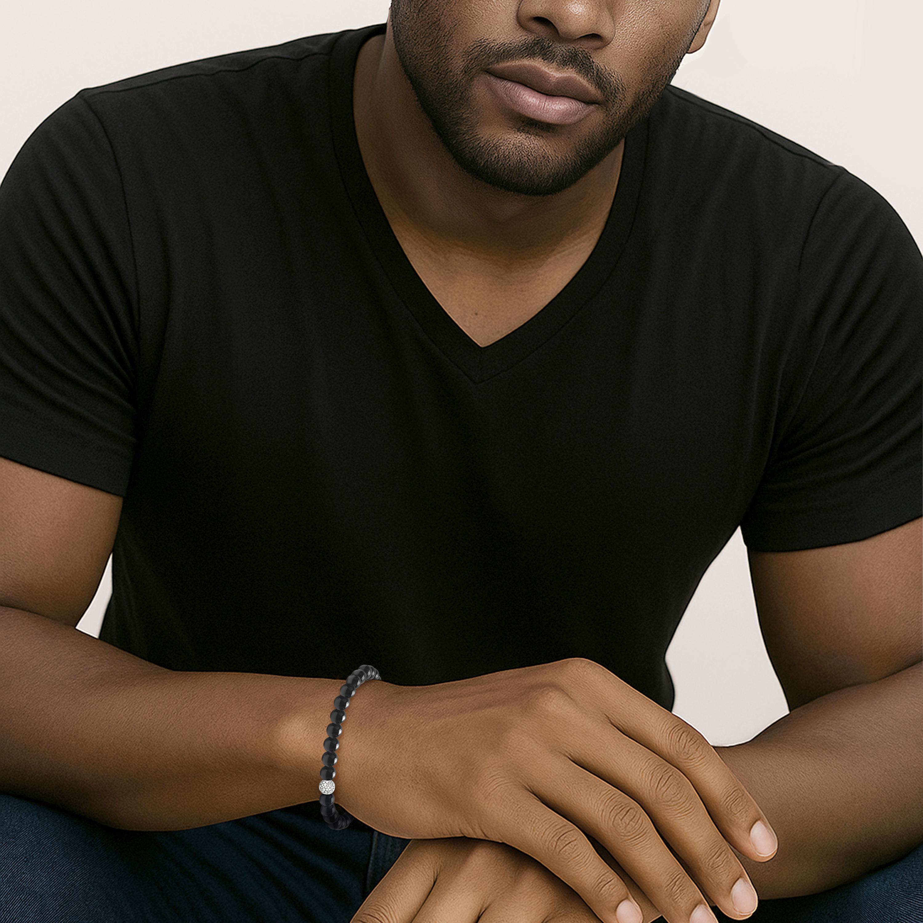 Elevate your style with the Spiritual Obsidian Beads Bracelet with Pavé White Sapphire Station by Taormina Jewelry — where modern minimalism meets timeless craftsmanship. Hand-assembled with precision, this unisex piece features smooth, deep-black obsidian beads with a single Pavé White Sapphire Stations, adding a refined contrast of brilliance and depth. Each detail reflects the Taormina commitment to elevated design, symbolic meaning, and exceptional materials. T