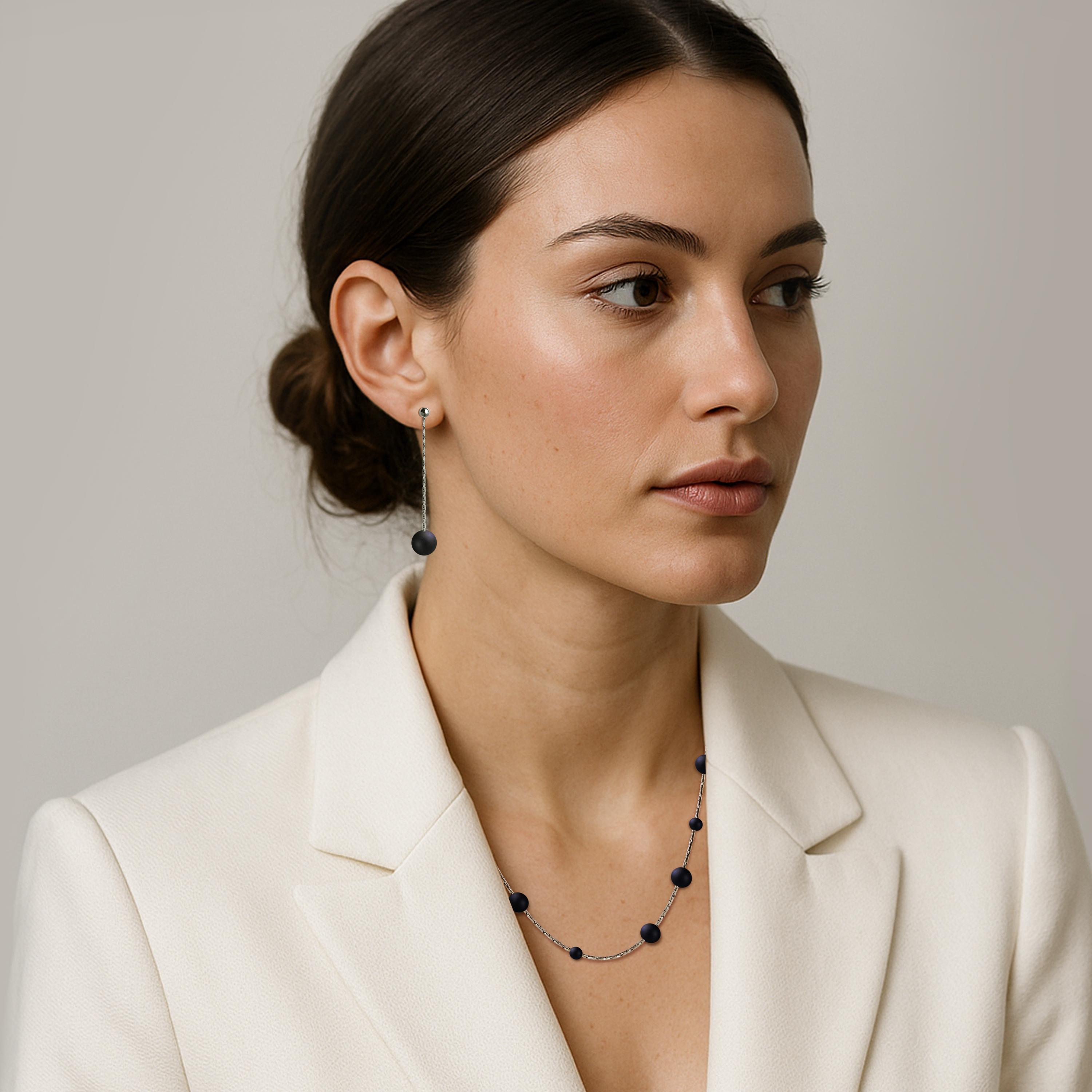 Sleek and sculptural, these handcrafted earrings by Taormina Jewelry feature a long, square-style extra thin chain suspended from a polished stud, finished with a matte natural round stone for a bold yet refined silhouette.