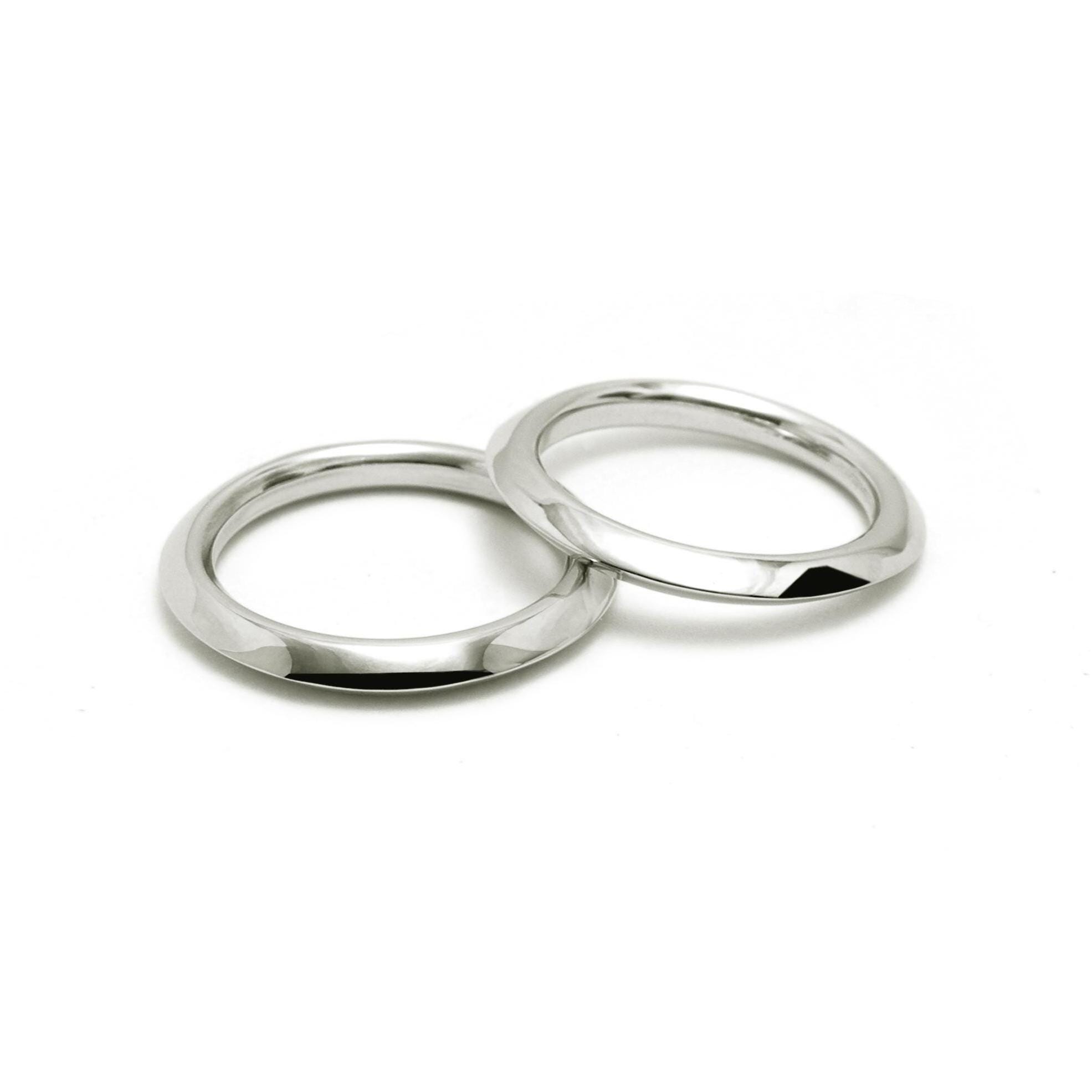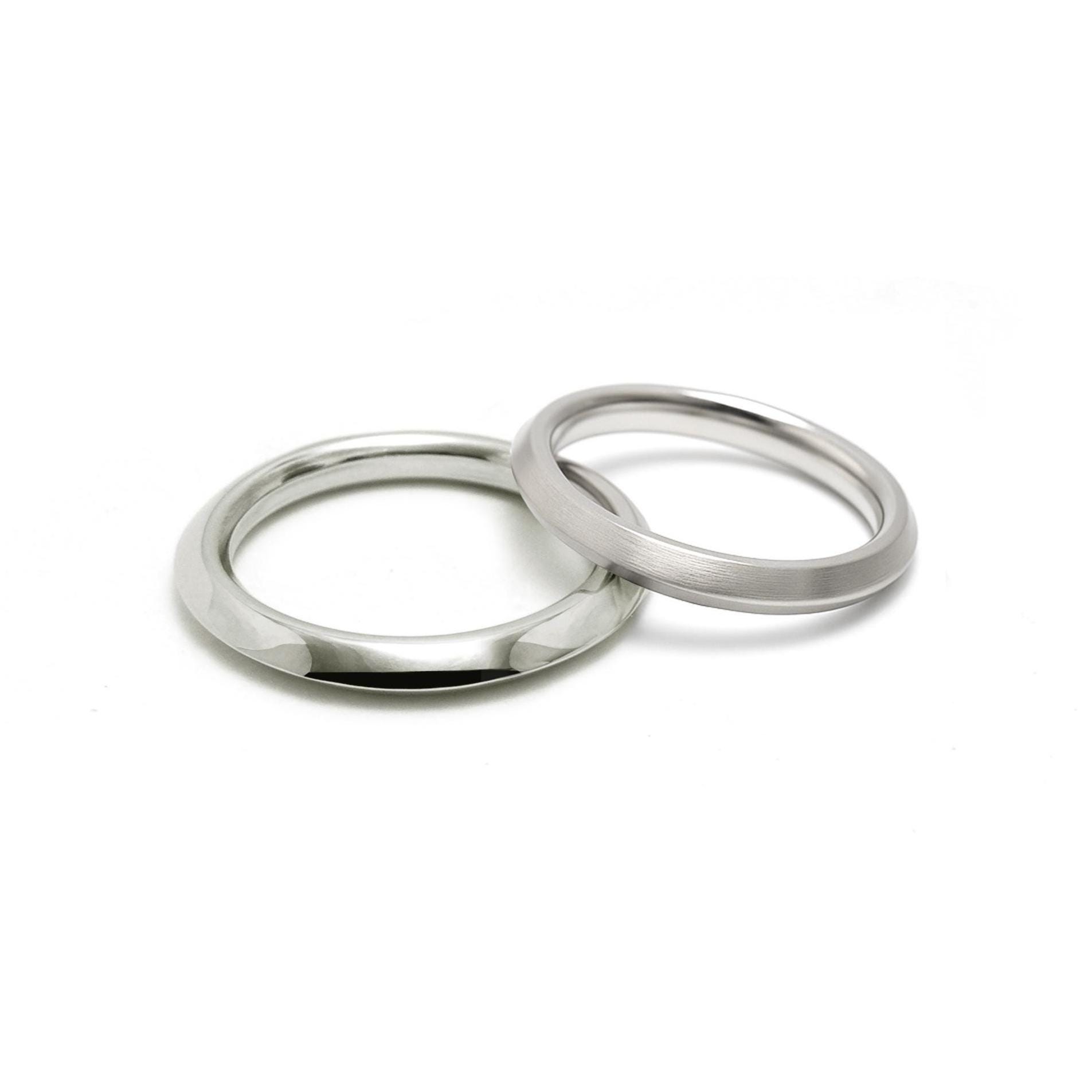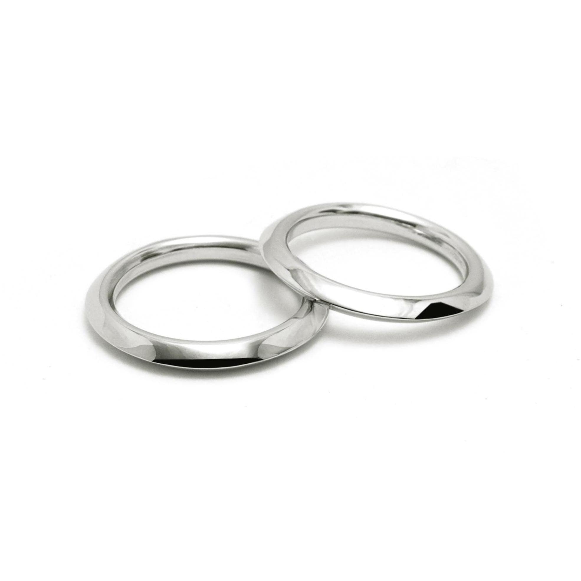 Rooted in the foundational principles of Bauhaus design, these rings combine harmony, balance, and clean, confident style. The intricate triangular form is an expression of sensuous minimalism. Whether crafted with a polished or a brushed finish, the design is a testament to architectural elegance.