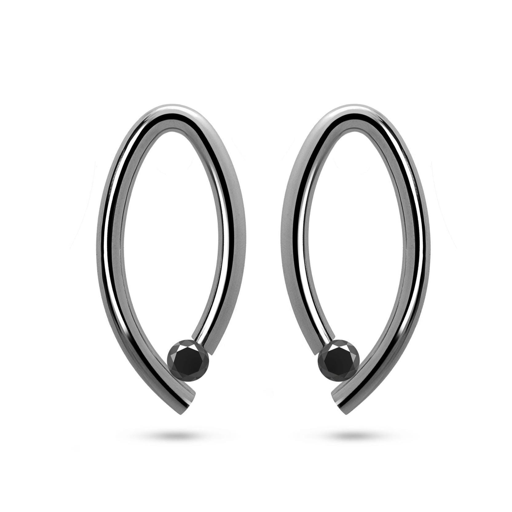 Bold, modern, and effortlessly elegant — these tension-set earrings from Taormina Jewelry feature a graceful, elongated oval silhouette crafted from polished stainless steel. A Black Diamond is securely held in place by the force of the metal, floating delicately between the ends for a minimal yet striking effect.