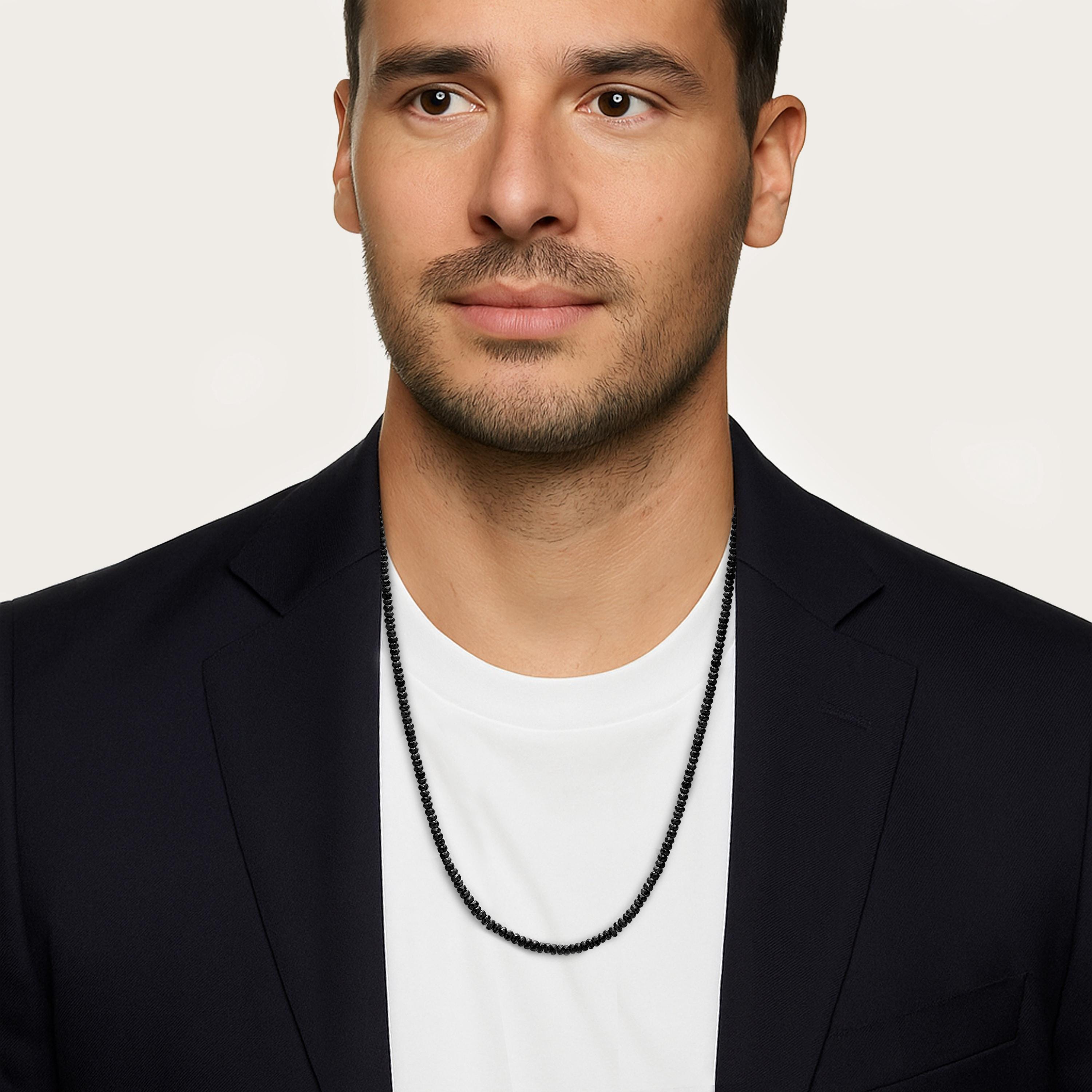 Expertly handcrafted by Taormina Jewelry, this Top Quality 4mm black Spinel bead Necklace is a modern expression of spiritual strength and minimalist luxury. Every detail reflects our dedication to precision and quality — strung using a double stainless steel coated wire, for exceptional resistance, long-lasting wear and flexibility.