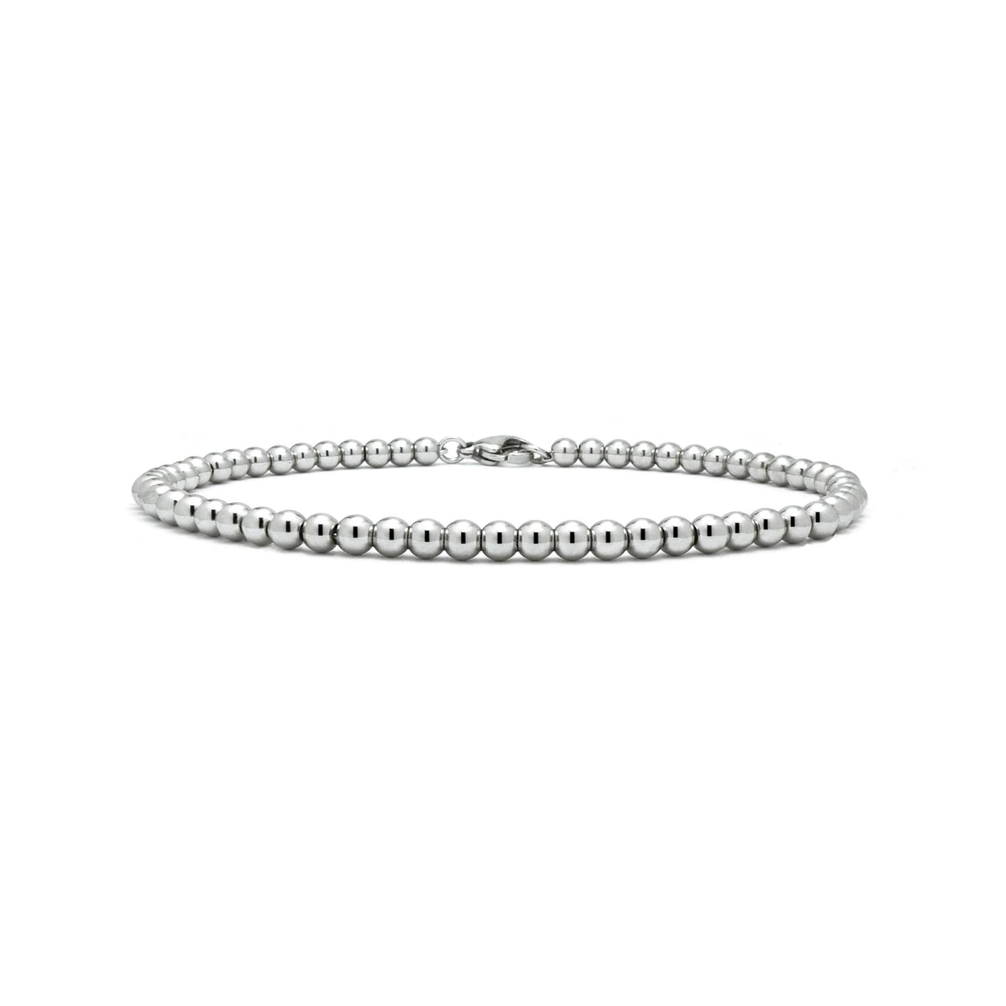 Engineered for the discerning wearer, this sculptural bracelet is a refined expression of understated luxury, designed to enhance sophistication and confidence. It is composed of 3mm polished stainless steel beads, seamlessly strung on an ultra-fine internal steel chain for both flexibility and strength, finished with a secure lobster clasp. This piece embodies the essence of modern minimalism and quiet elegance.