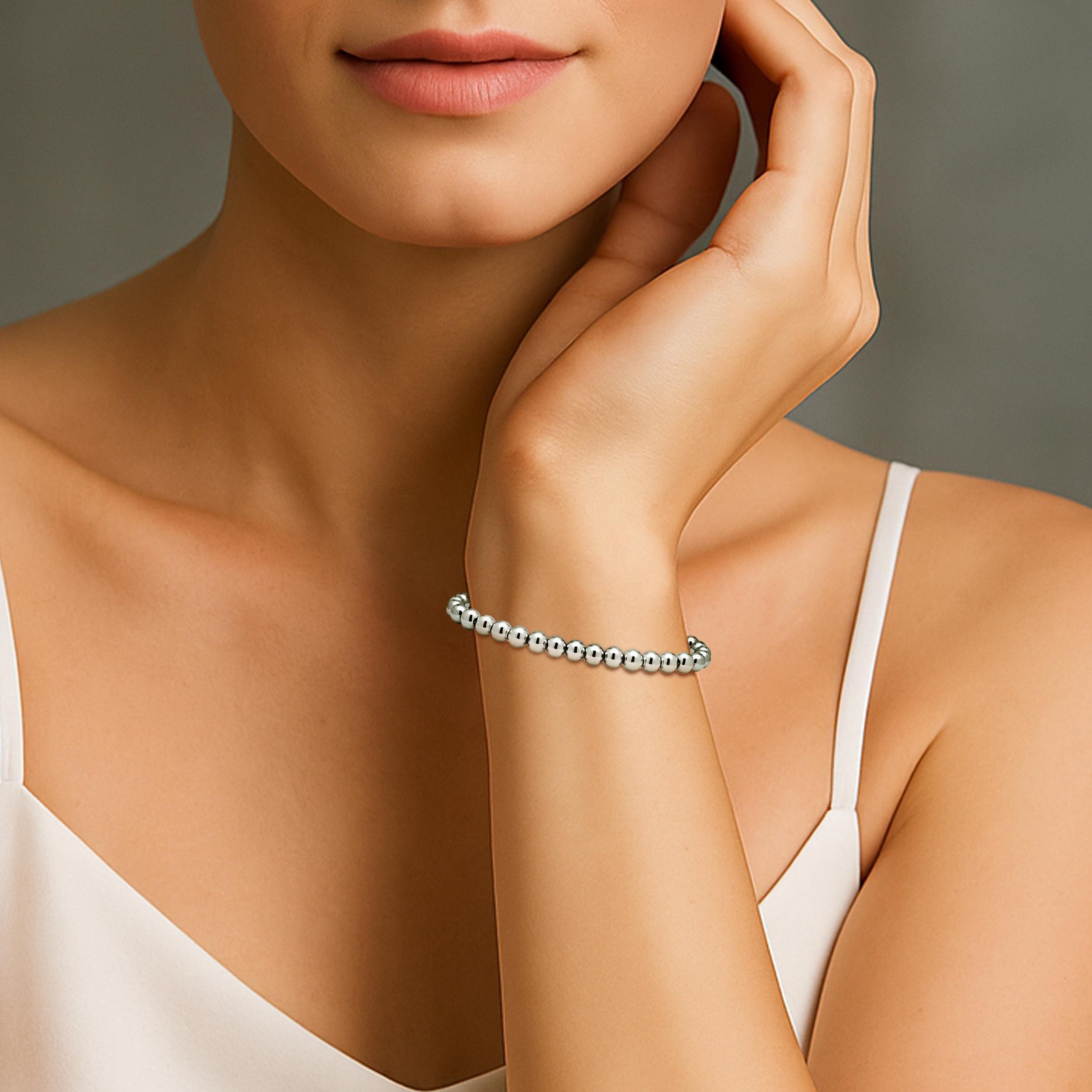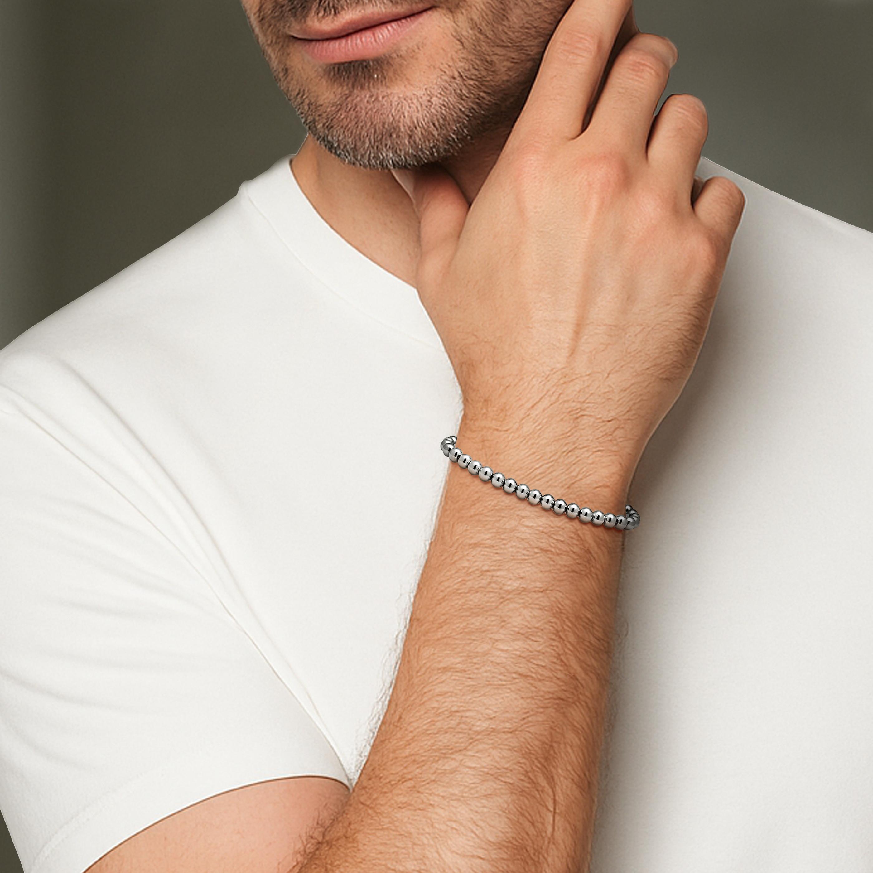 A refined expression of understated luxury, this bracelet is composed of 5mm polished stainless steel beads, seamlessly strung on an ultra-fine internal steel chain for both flexibility and strength, finished with a secure lobster clasp, this piece embodies the essence of modern minimalism. Designed for those who appreciate timeless design and quiet elegance.