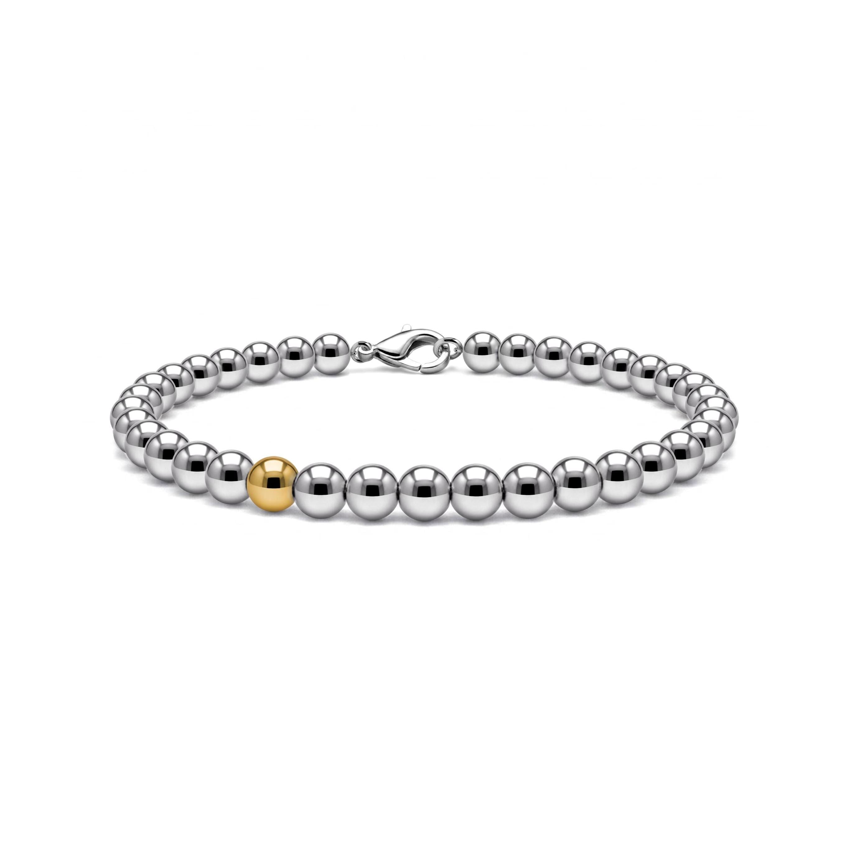 Each 6mm bead is precision-crafted from solid stainless steel, providing that substantial, premium weight that defines our brand. At its heart, the singular gold orb acts as a brilliant focal point, hand-polished to a mirror-finish that reflects light with extraordinary clarity. Unlike mass-produced alternatives, the intentional contrast between the cool steel and the warm gold signifies a higher level of craftsmanship.