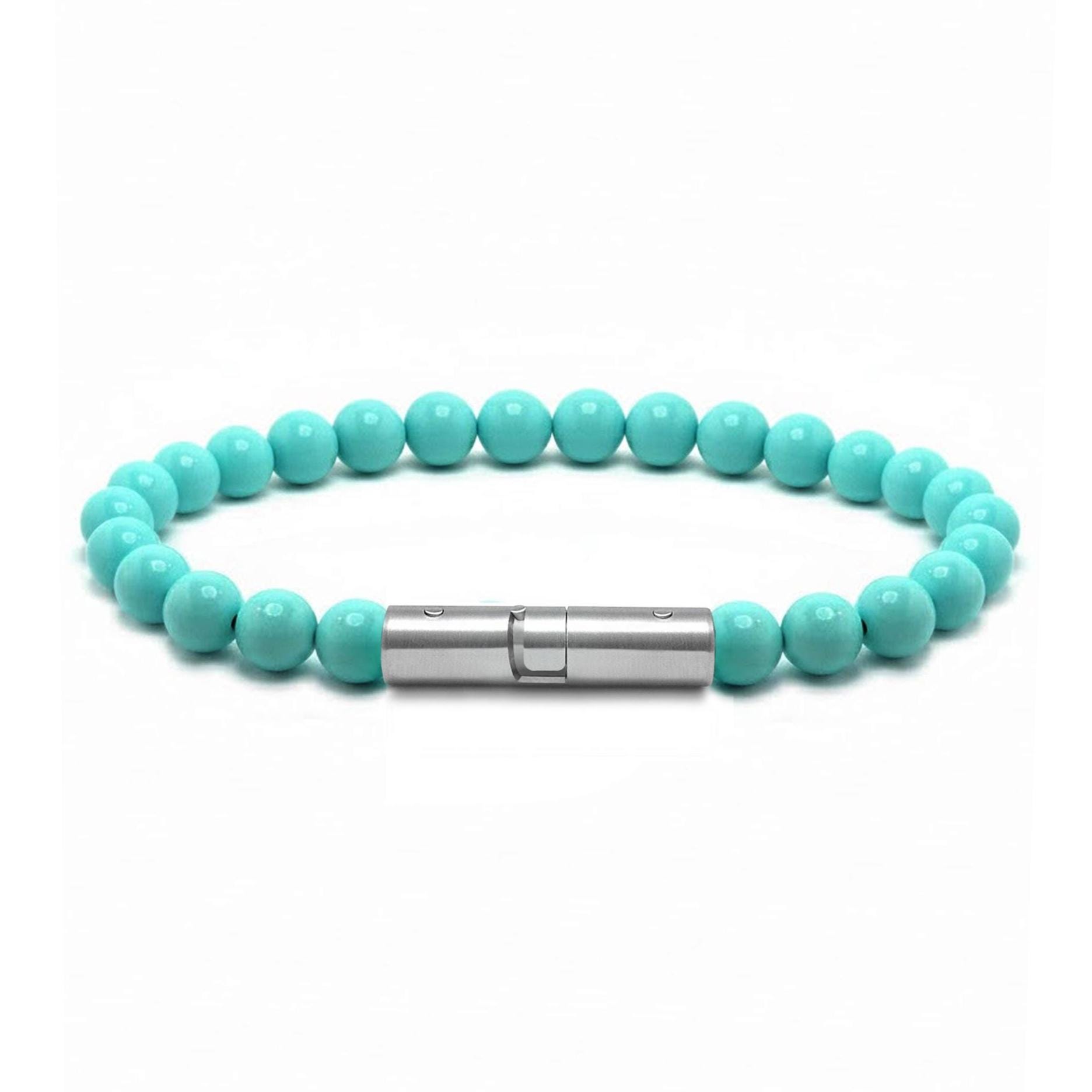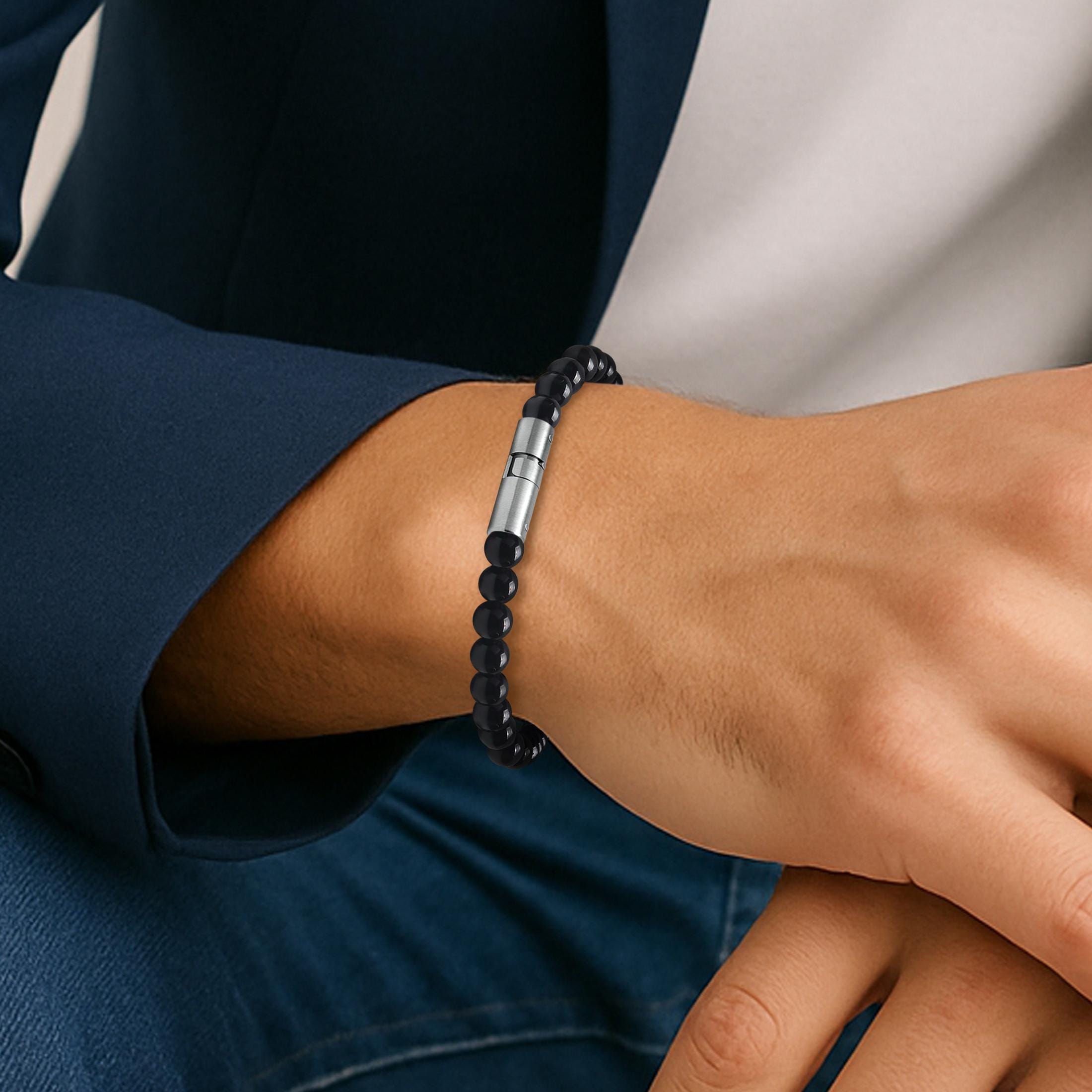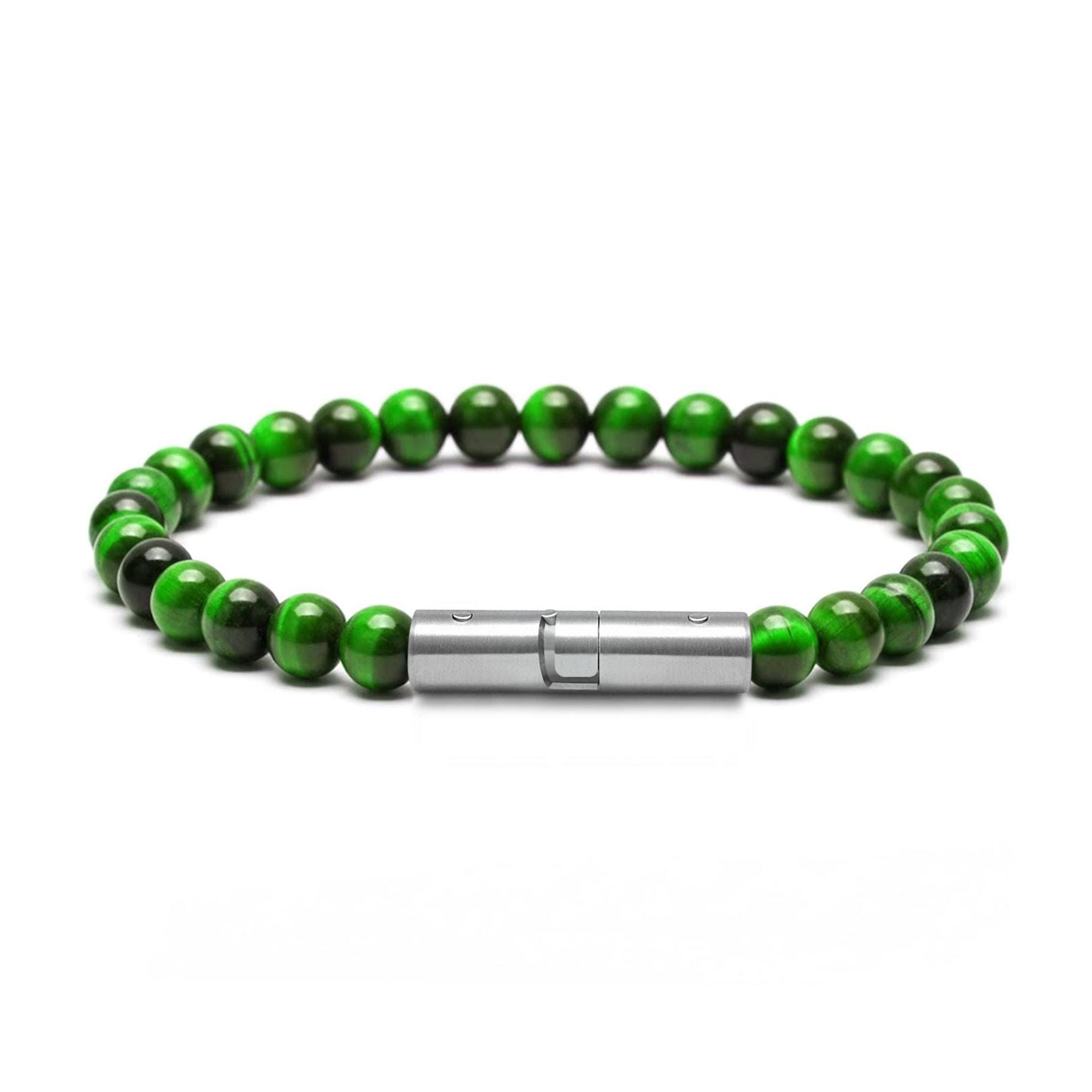 Available in a curated selection of natural round stone — including green tiger’s eye, turquoise, obsidian, and more — each bracelet is designed to channel calm energy while enhancing your personal style.