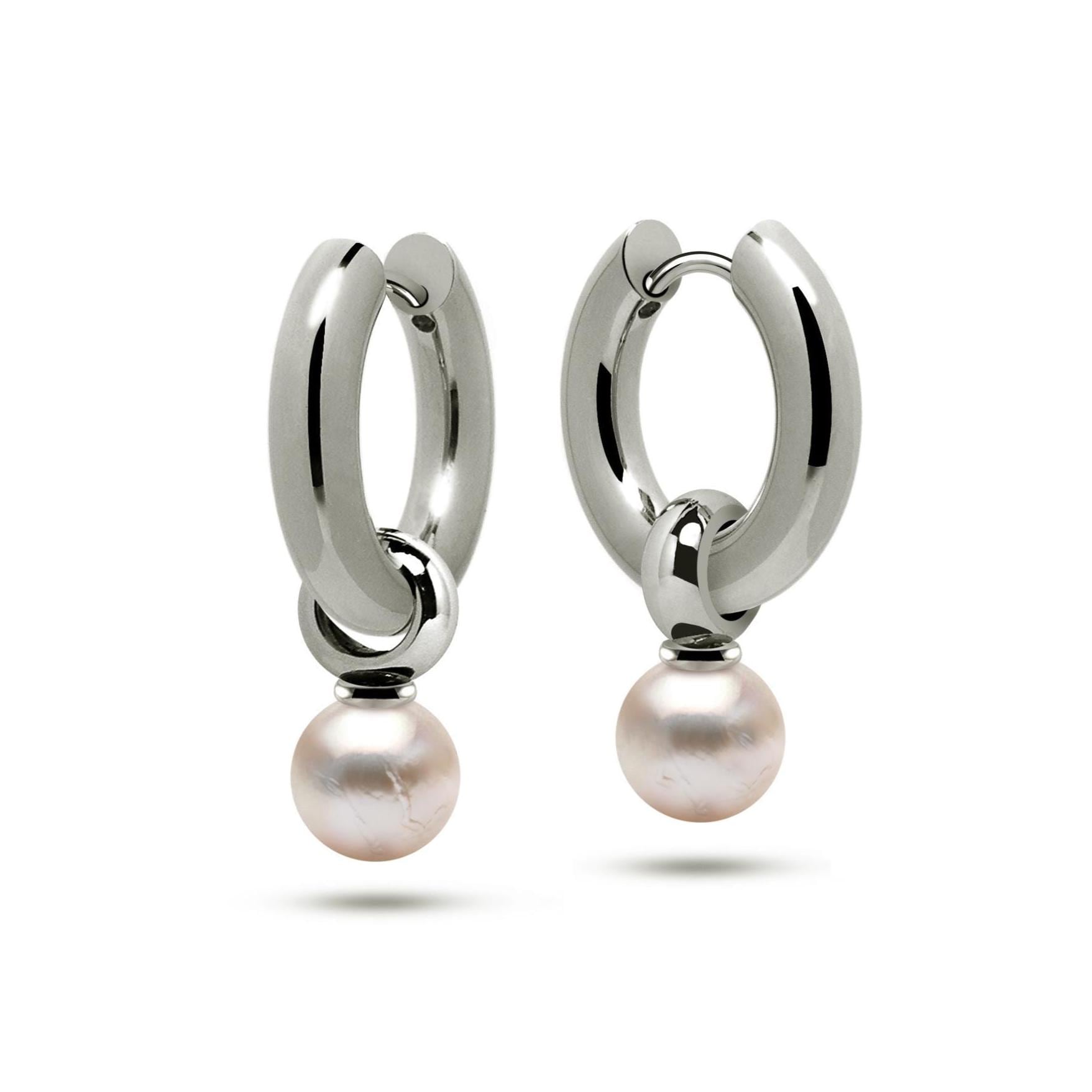 Gocce Earrings, timeless elegance meets modern design. These polished huggie hoops feature lustrous, slightly baroque pearls, offering a unique organic shape that catches the light beautifully. Suspended freely from the hoop, the pearl pendants sway and dance with your every movement, adding a dynamic touch of light to your style.