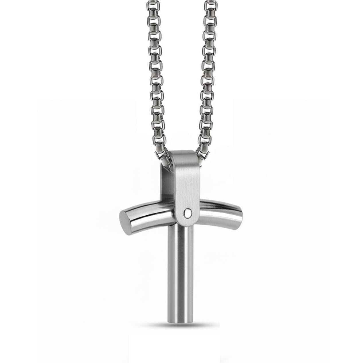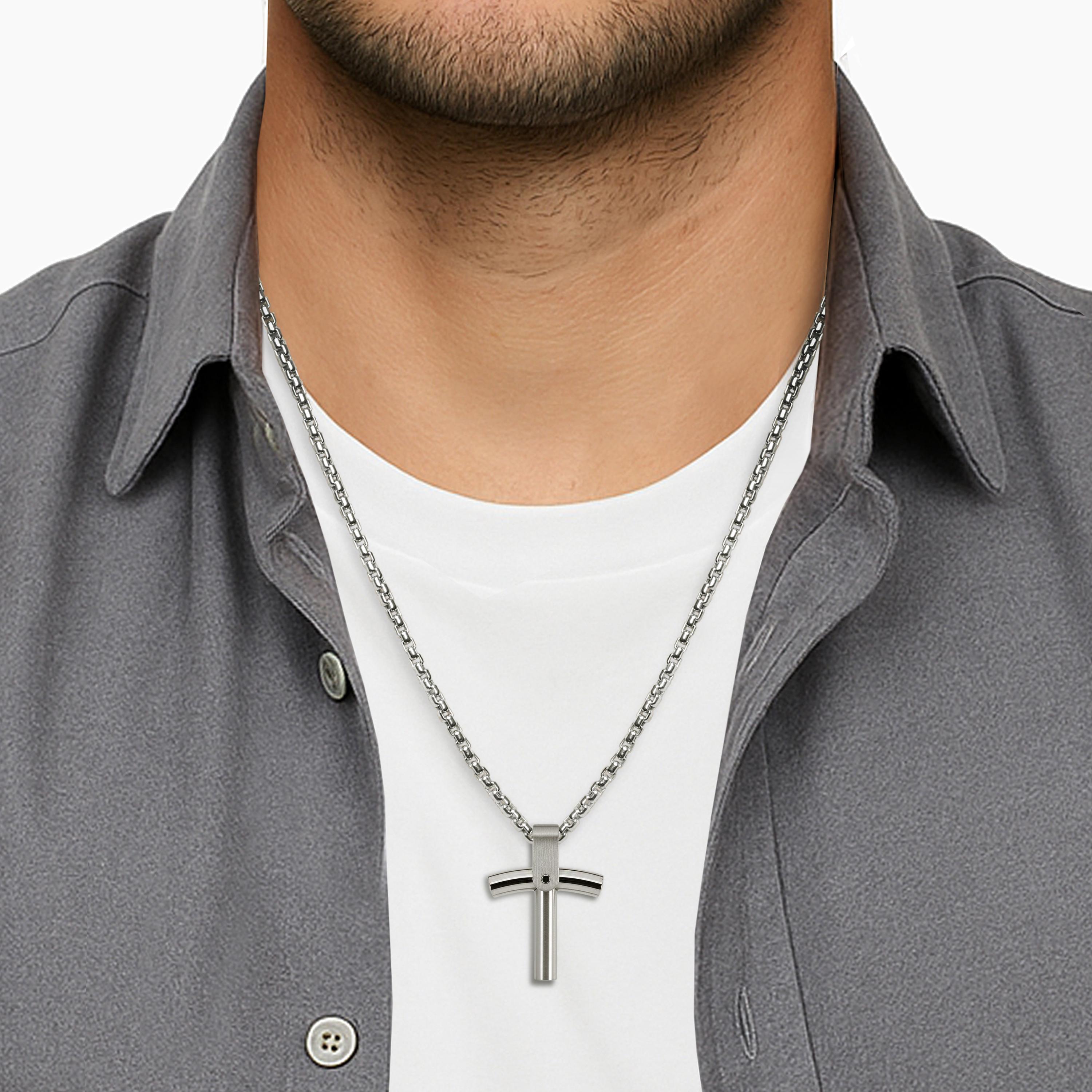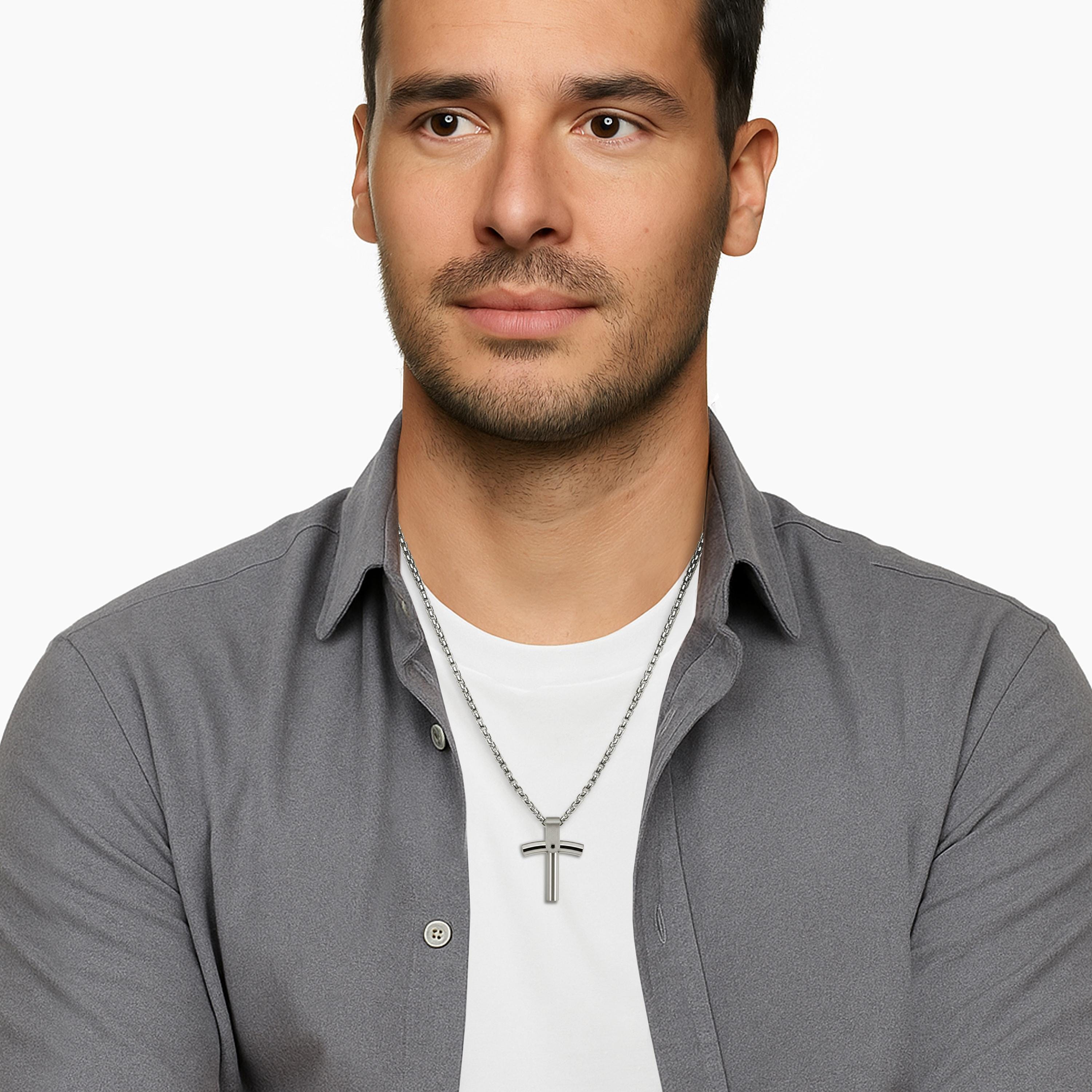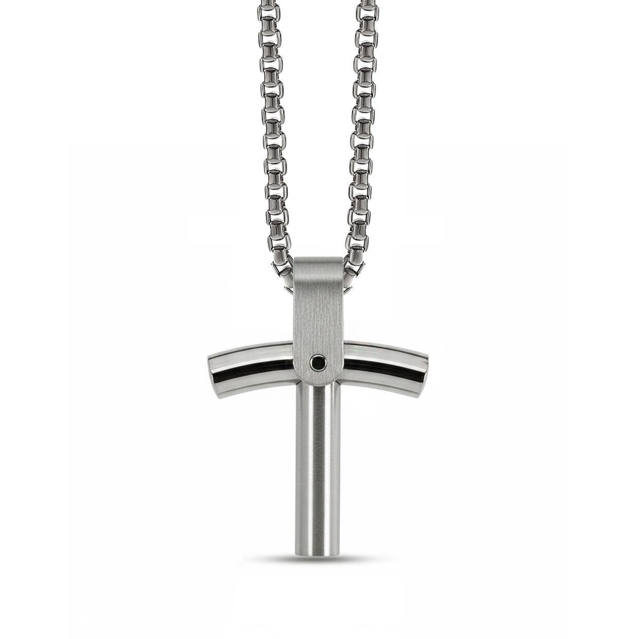Reimagining the classic cross with architectural finesse, this Taormina Rods Cross Pendant is a refined expression of minimalist aesthetics and modern craftsmanship. Crafted from premium 316 stainless steel, it presents brushed and polished tubular rods intersecting for a striking two-tone contrast. The pendant bail is seamlessly integrated into the top of the cross—an elegant detail that makes this design uniquely sophisticated.