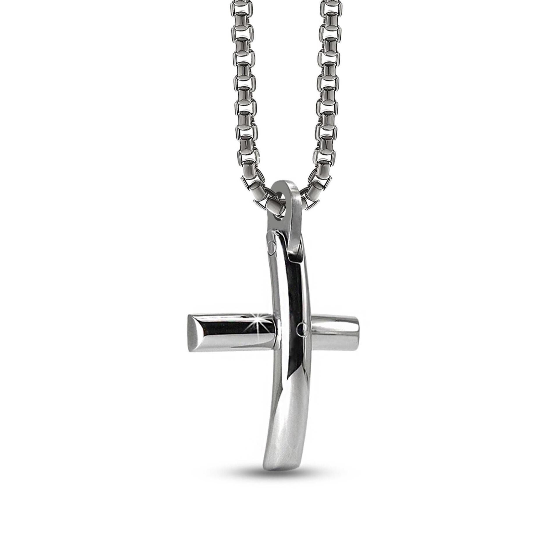 Modern and unique designs in this high polished Cross pendant. Totally hand made with a unique and innovative technique: This exclusive Cross doesn't contain any soldering material, the parts are locked together just by tension and compression of the metal itself.