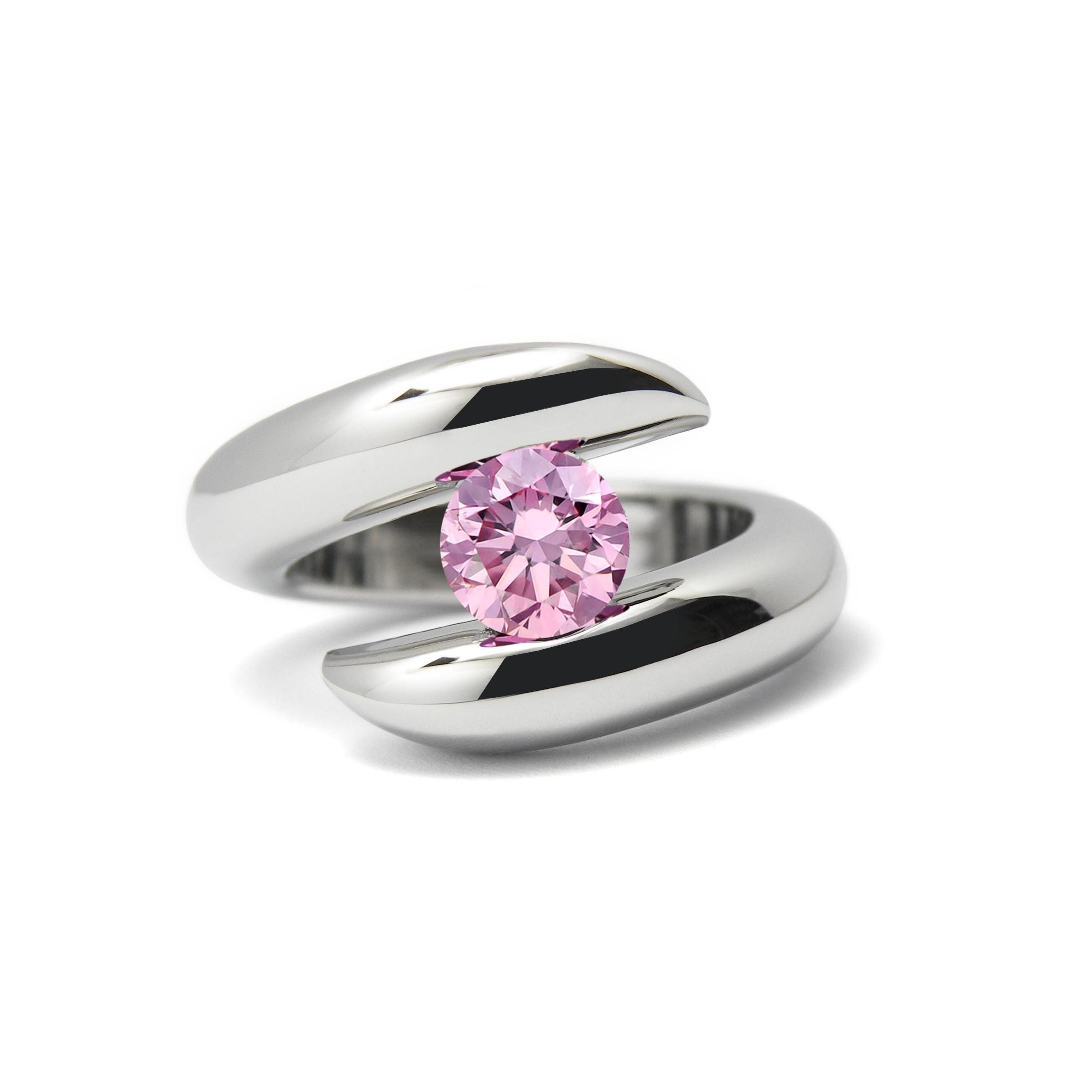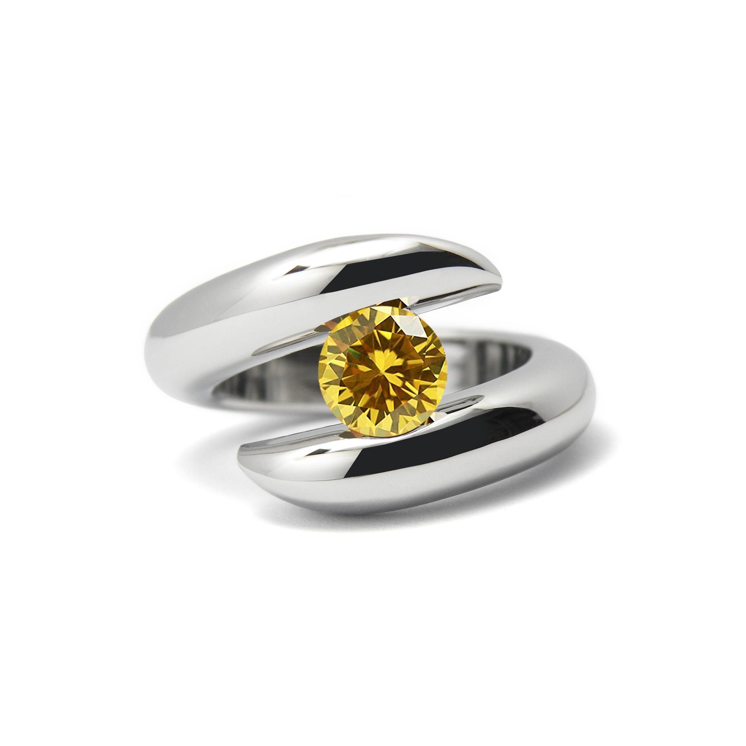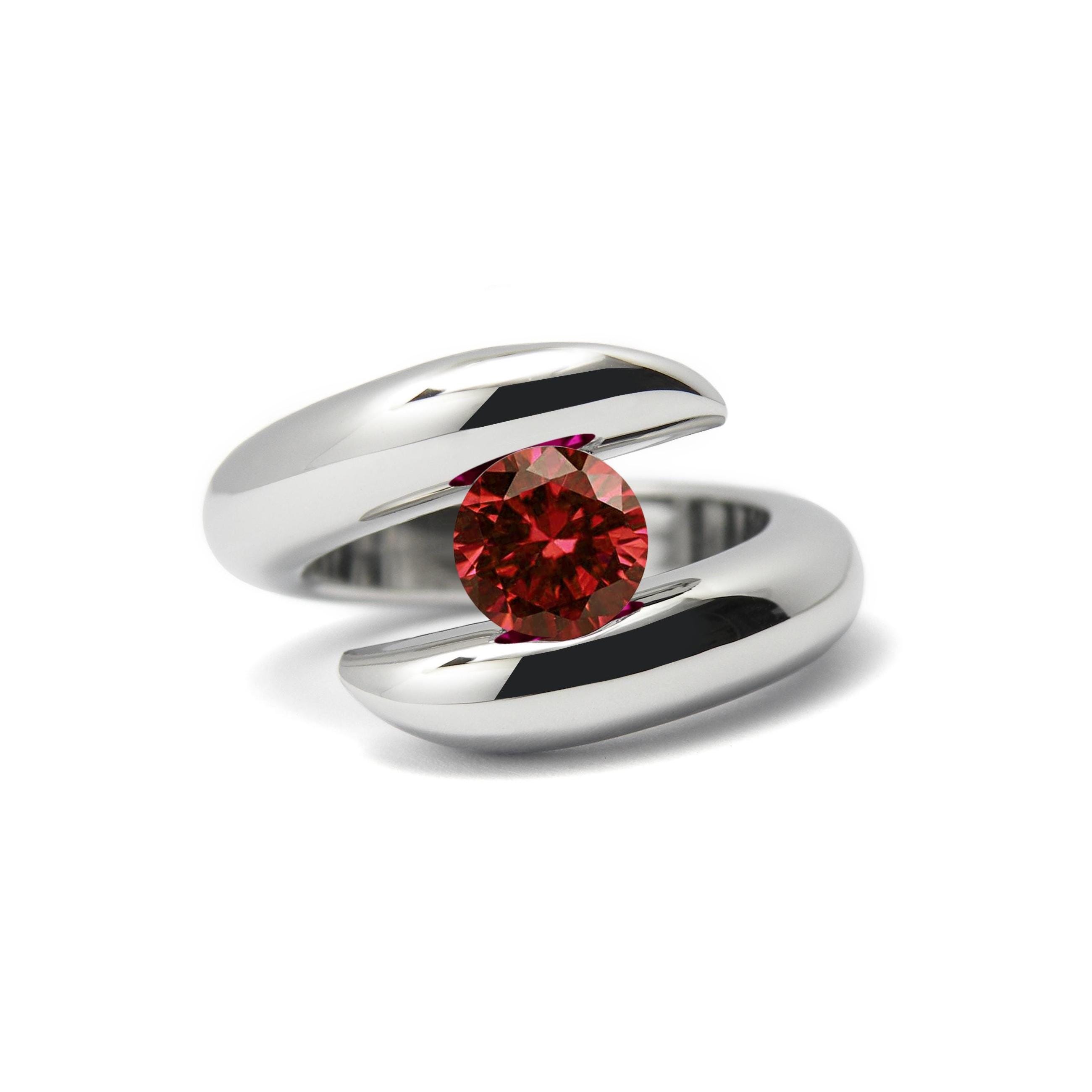 A sleek bypass design where two graceful bands flow around the finger, meeting in a tension of perfect balance. At the center, a luminous round colored gemstone radiates with refined brilliance. The sculptural silhouette feels fluid and contemporary, yet timeless in its elegance — a piece that embodies both style and luxury, standing out effortlessly in any setting.