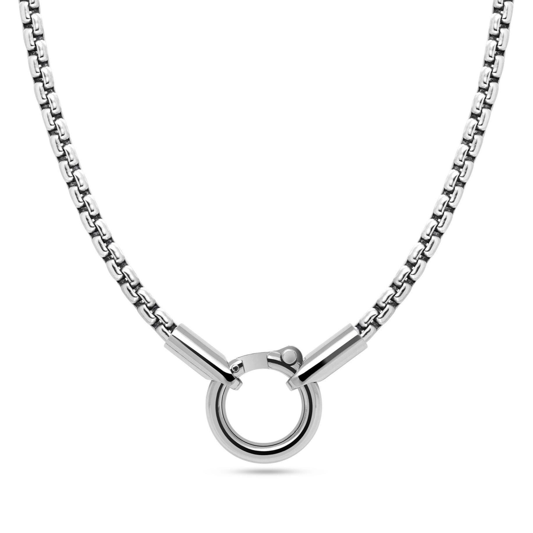 Sleek, bold, and contemporary — this unisex box chain necklace is crafted in high-polish stainless steel for a clean, modern look that suits any style. The standout feature is the circular clasp, designed not only for secure closure but also for functionality: it opens effortlessly, allowing you to add your favorite pendants or charms. Minimal yet expressive, this necklace can be worn alone for a refined statement or customized with personal touches. Perfect for both men and women who appreciate understated luxury and versatility in their jewelry.