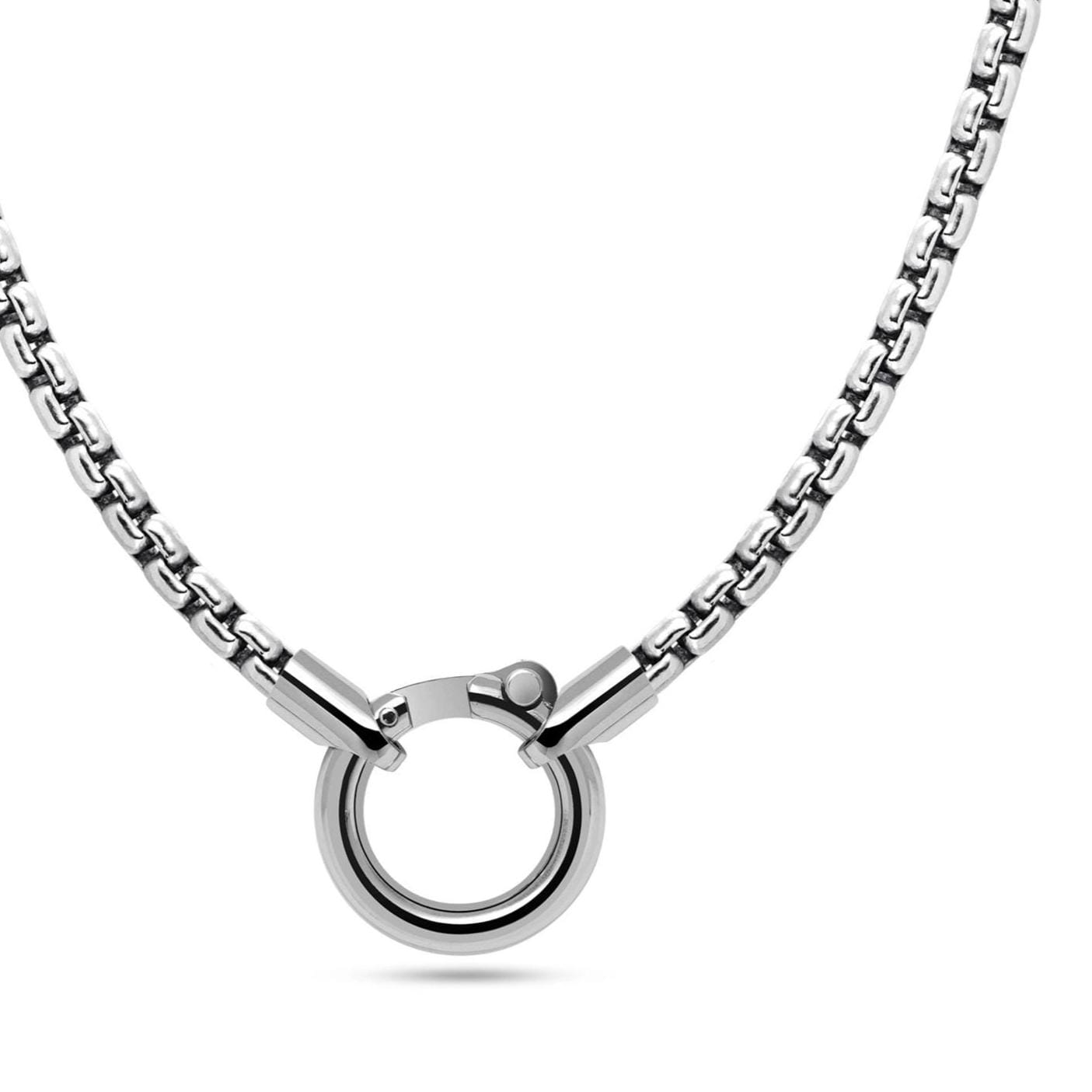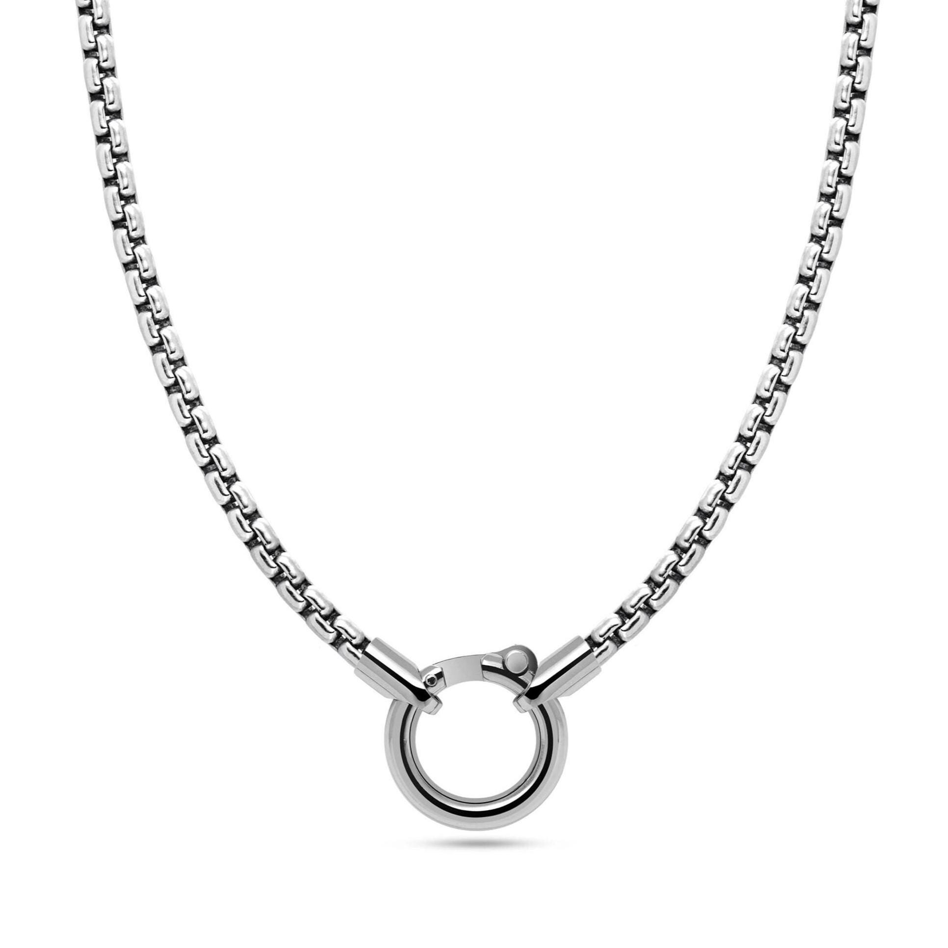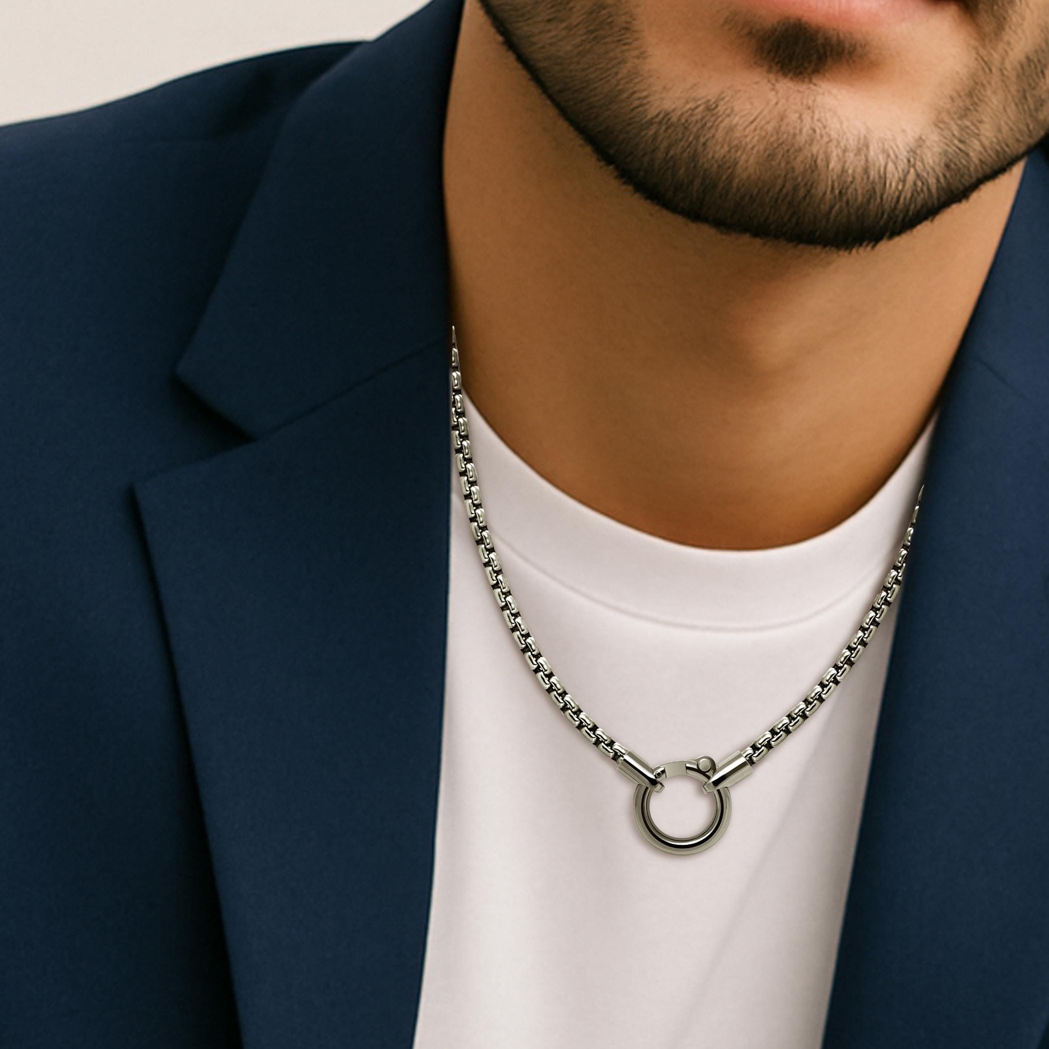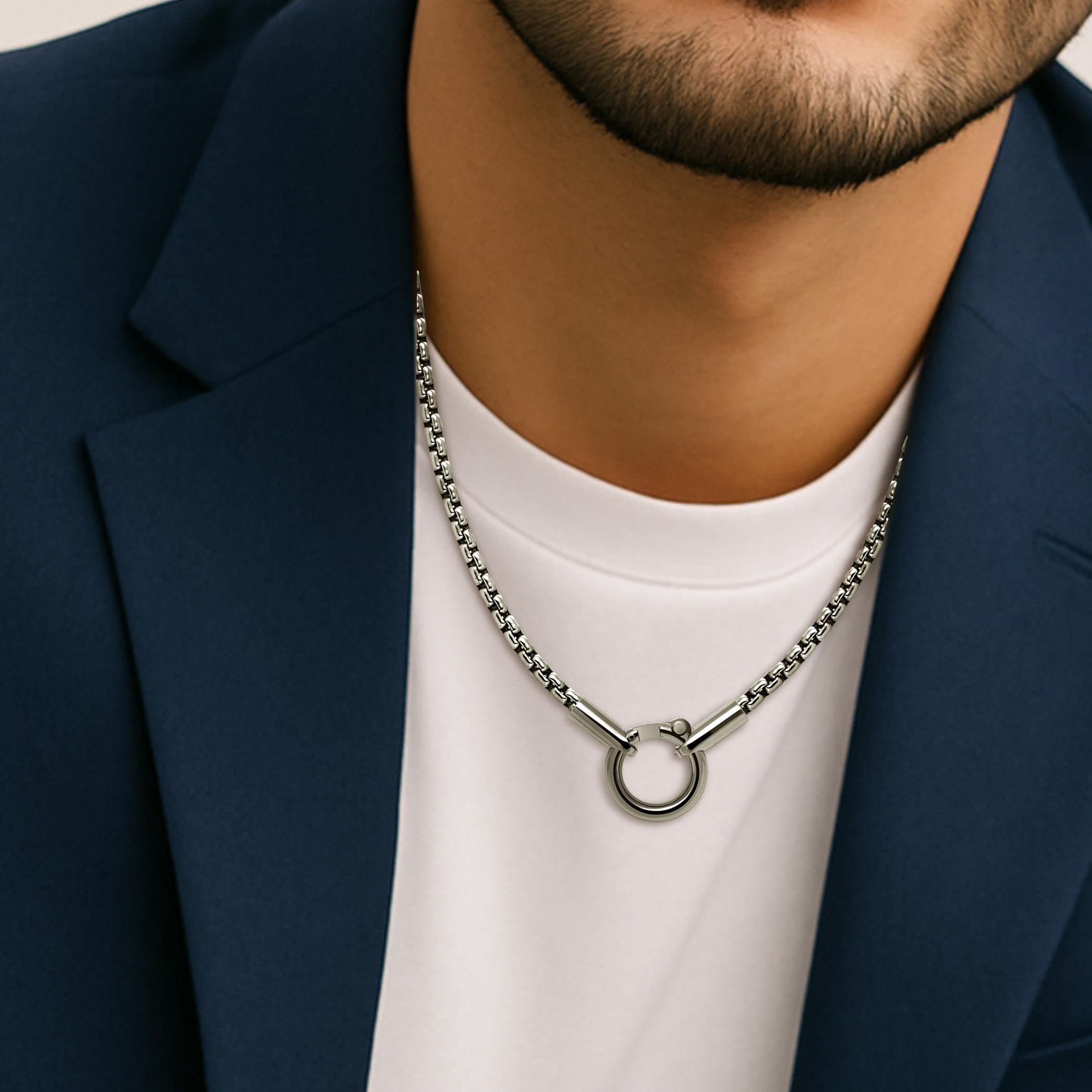 Sleek, bold, and contemporary — this unisex box chain necklace is crafted in high-polish stainless steel for a clean, modern look that suits any style. The standout feature is the circular clasp, designed not only for secure closure but also for functionality: it opens effortlessly, allowing you to add your favorite pendants or charms. Minimal yet expressive, this necklace can be worn alone for a refined statement or customized with personal touches. Perfect for both men and women who appreciate understated luxury and versatility in their jewelry.