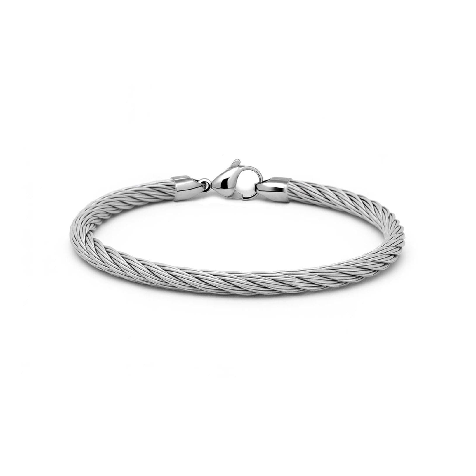 Bold. Resilient. Refined. 4mm stainless steel wirerope cable bracelet with lobster clasp is designed for those who value clean lines and effortless elegance. Featuring a tightly braided cable construction, it delivers a modern industrial edge while maintaining a minimal, gender-neutral aesthetic.