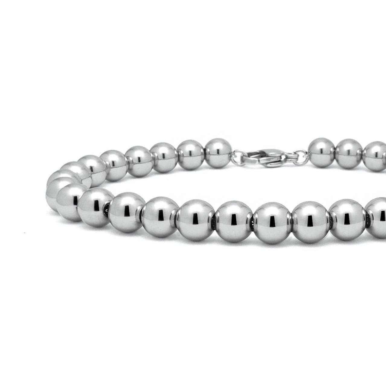 A refined expression of understated luxury, this bracelet is composed of 6mm polished stainless steel beads, seamlessly strung on an ultra-fine internal steel chain for both flexibility and strength. Finished with a secure lobster clasp, this piece embodies the essence of modern minimalism. Designed for those who appreciate timeless design and quiet elegance.