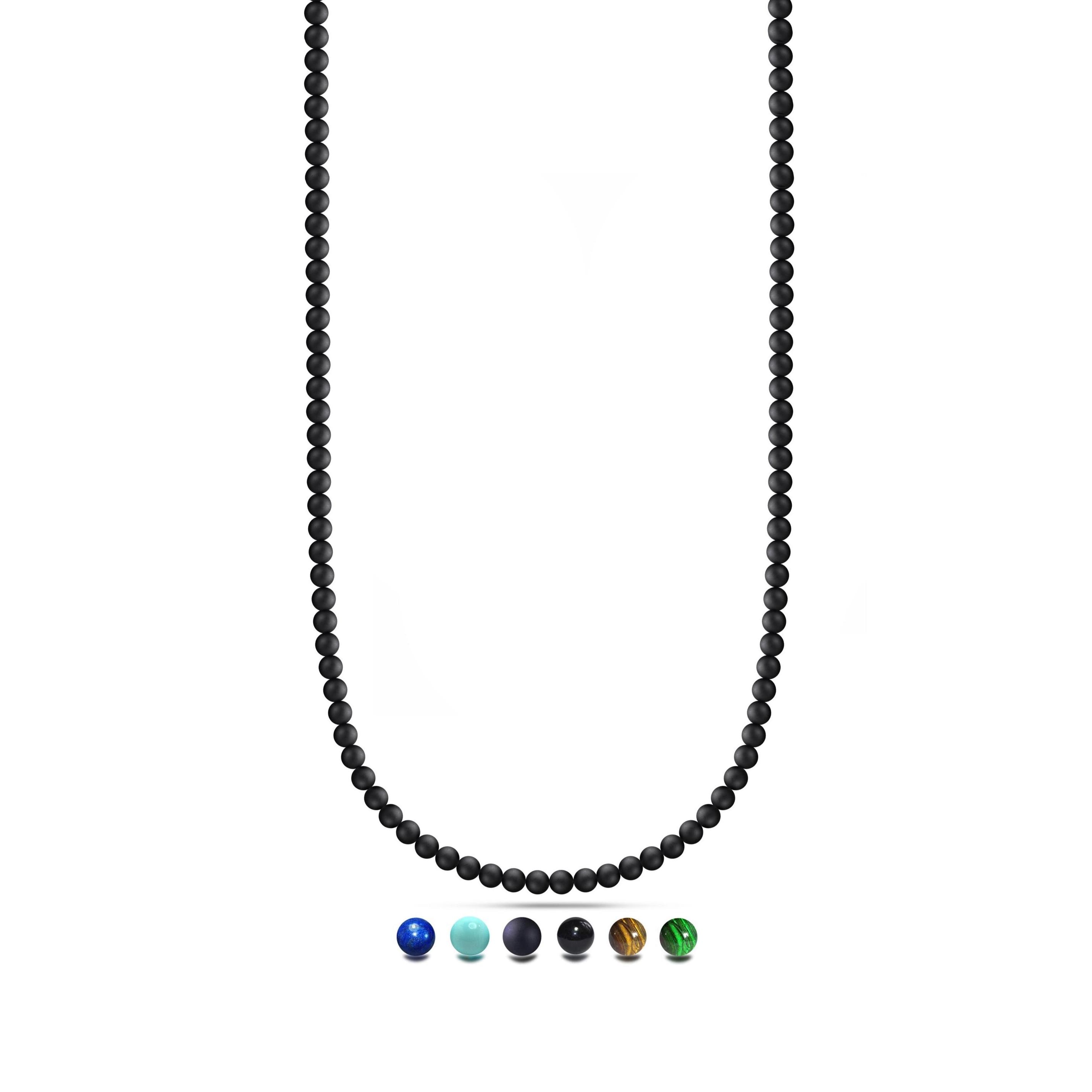 Thin yet sturdy, spiritual beaded necklace. Inspired by its spiritual significance, these modern beaded jewelry designs are symbolic of your inner spirit, style and authenticity. They are meant to be worn continuously as you move through life’s journey. Expertly crafted, they feature a variety of smoothly polished, semi-precious gemstones offered in a variety of colors that are strung onto a durable, flexible steel cable, ensuring maximum security and resistance to breakage.