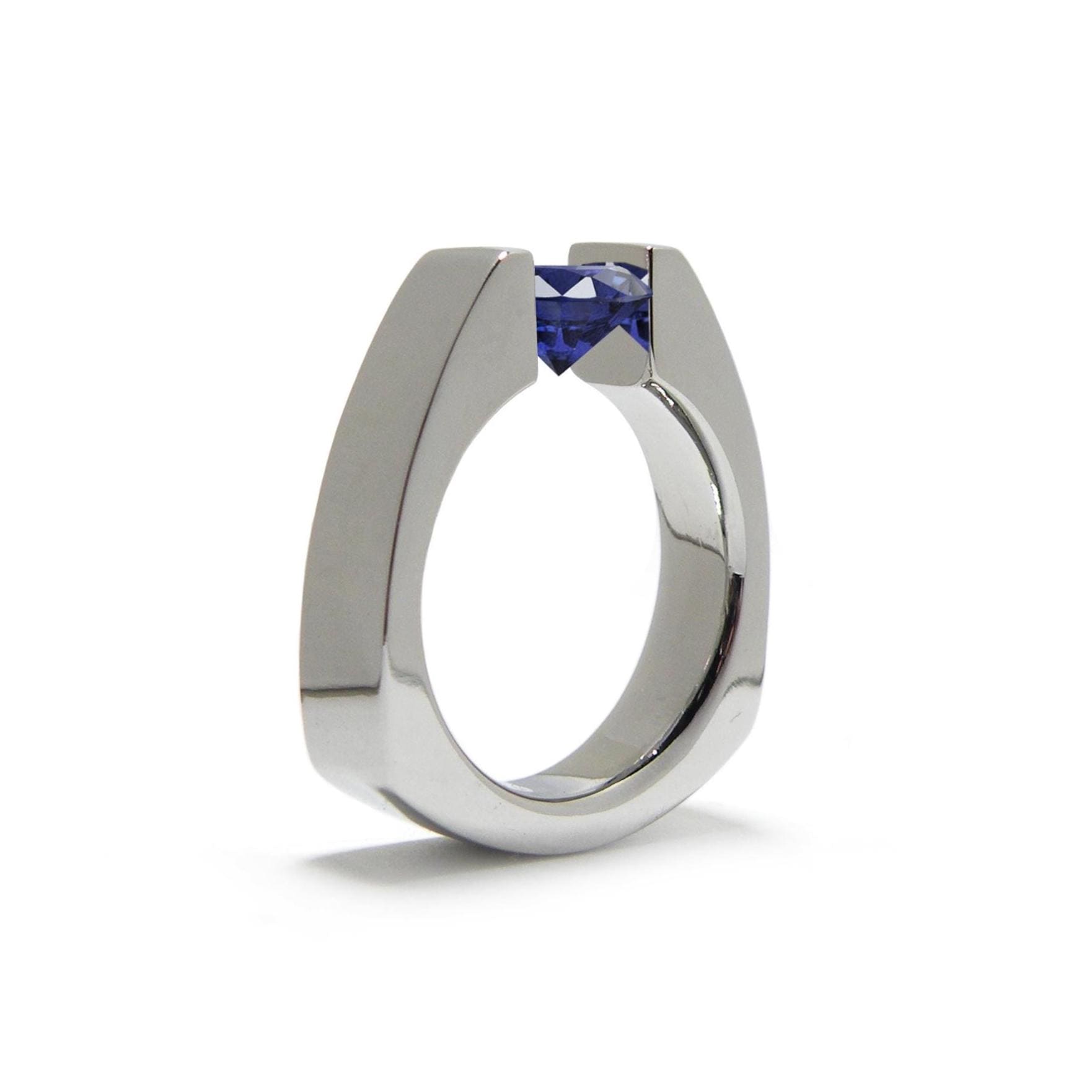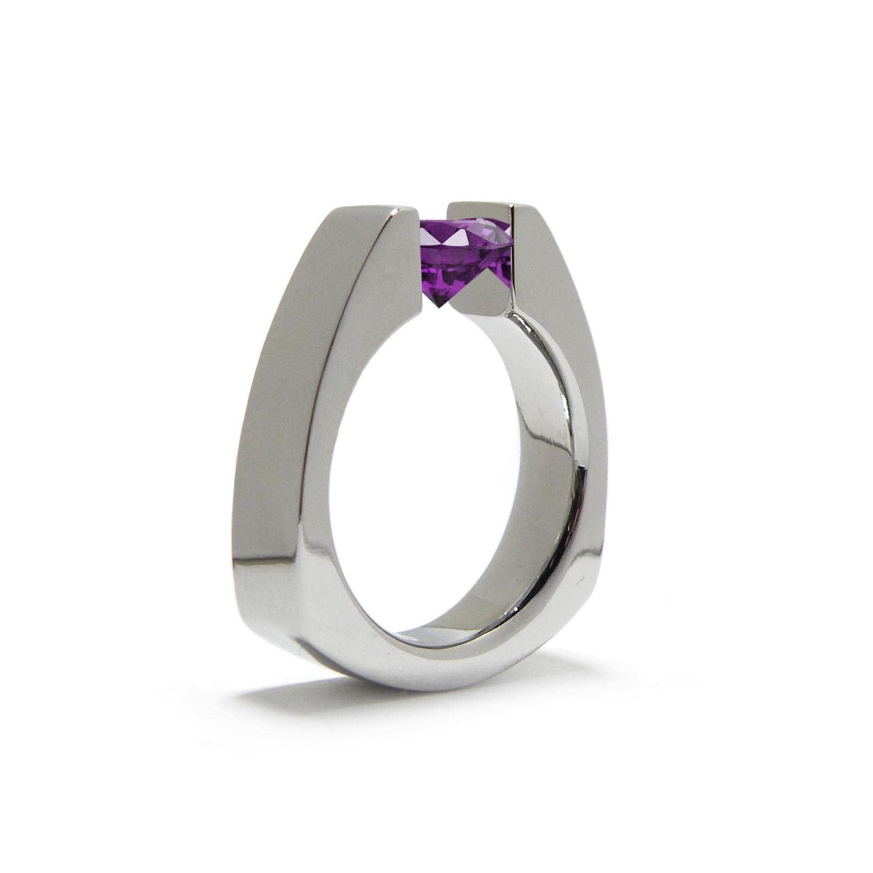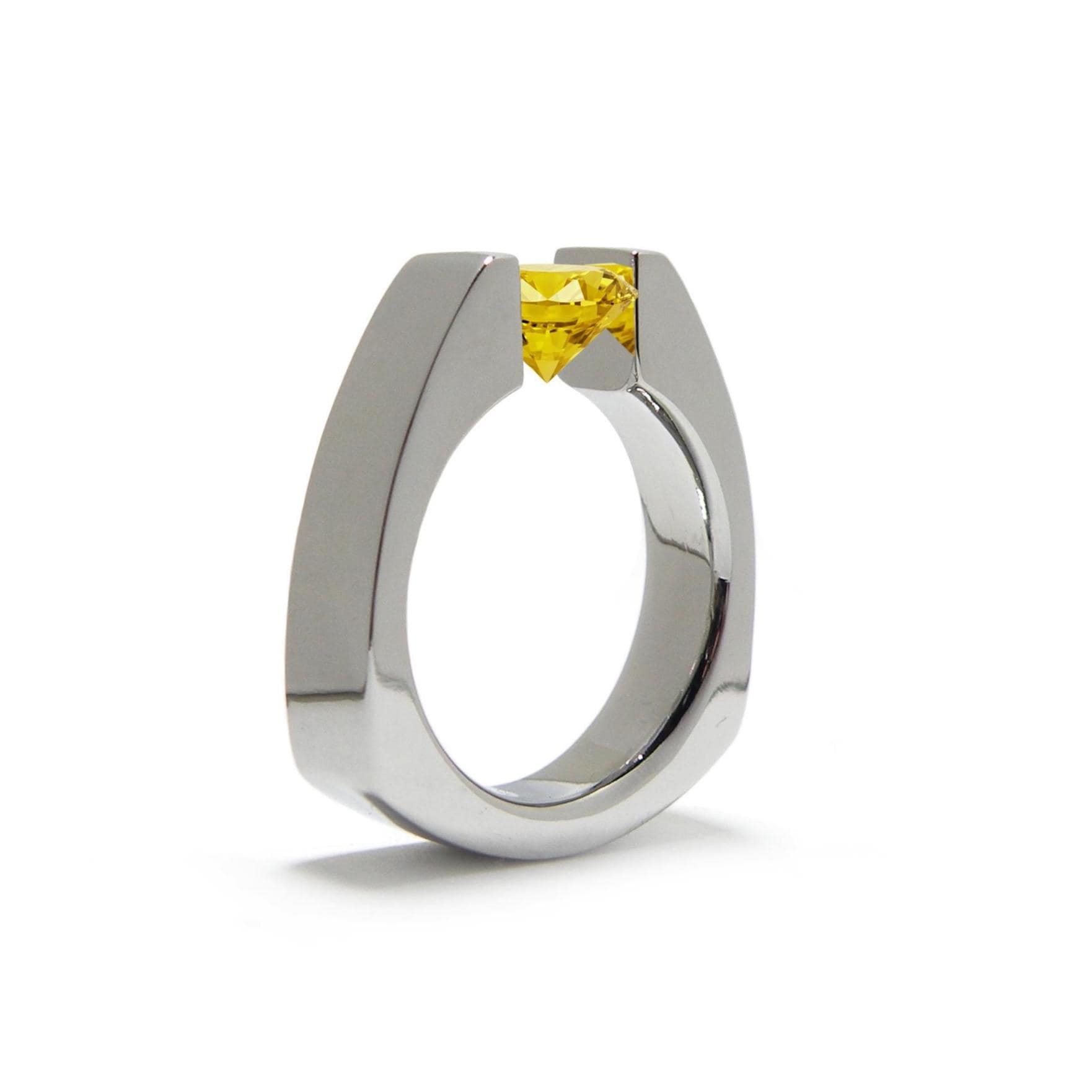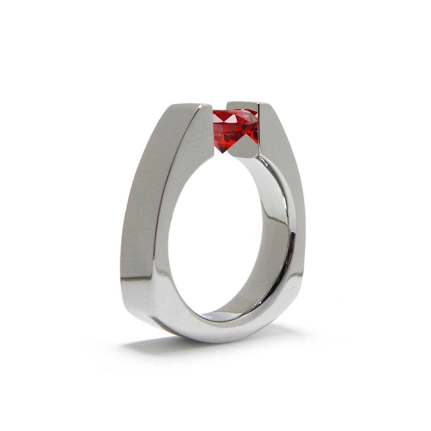 Bold geometry meets refined craftsmanship in this standout ring from Taormina Jewelry. Sculpted from high-grade 316 stainless steel, the design features a euro shank sharp triangular top—like a minimalist pyramid—paired with a brilliant round white sapphire set in a secure tension setting. The stone appears to float between the edges of the triangle, creating a striking architectural silhouette with a clean, modern finish.