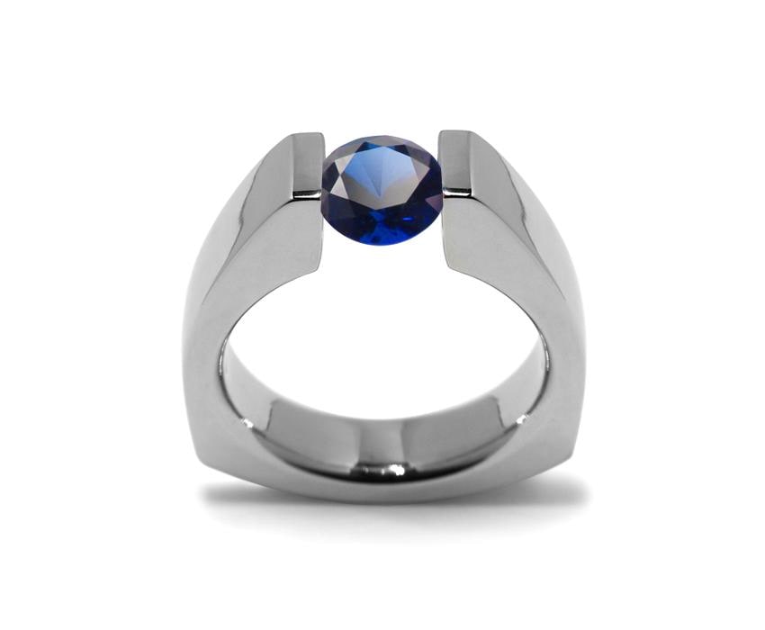 Bold geometry meets refined craftsmanship in this standout ring from Taormina Jewelry. Sculpted from high-grade 316 stainless steel, the design features a euro shank sharp triangular top—like a minimalist pyramid—paired with a brilliant round white sapphire set in a secure tension setting. The stone appears to float between the edges of the triangle, creating a striking architectural silhouette with a clean, modern finish.