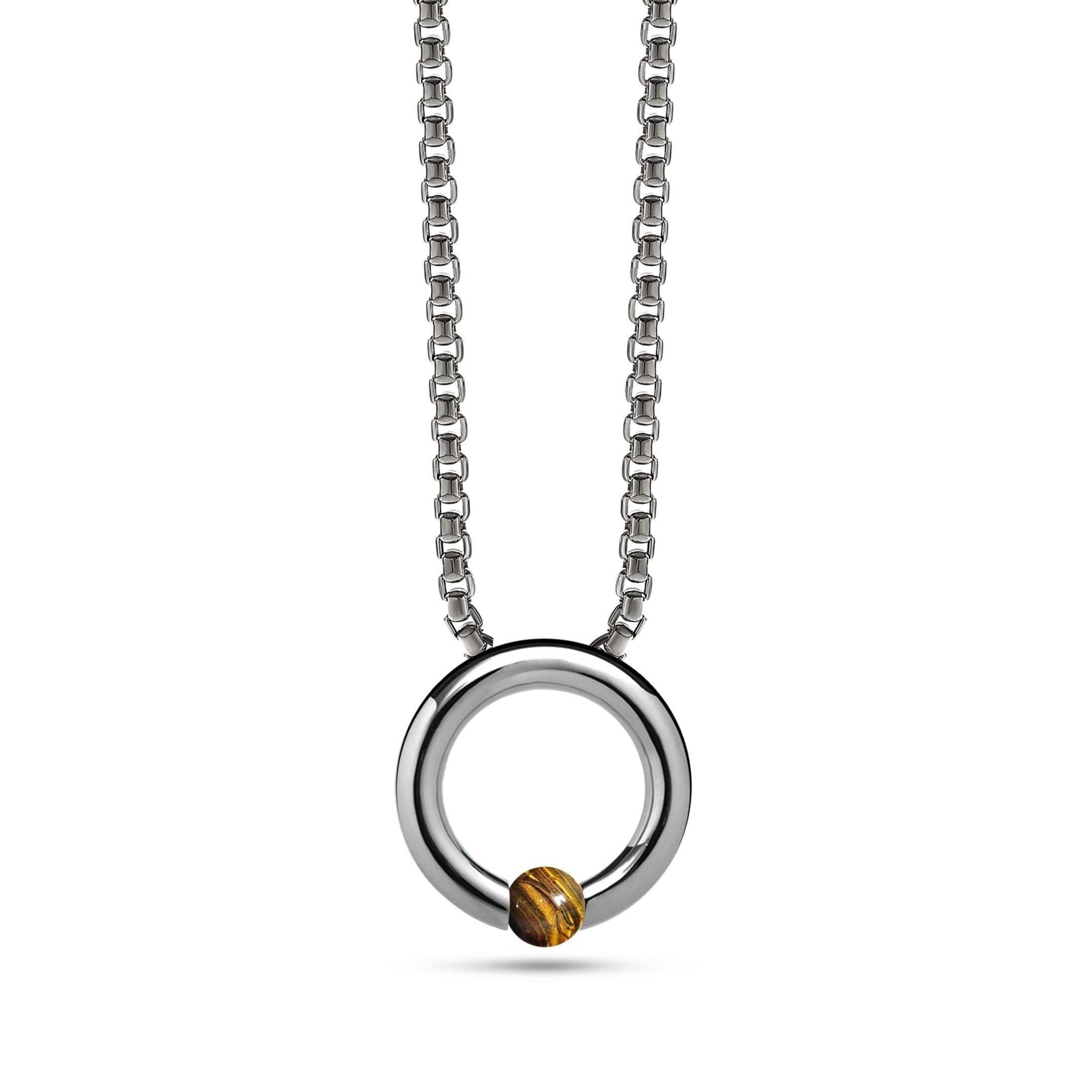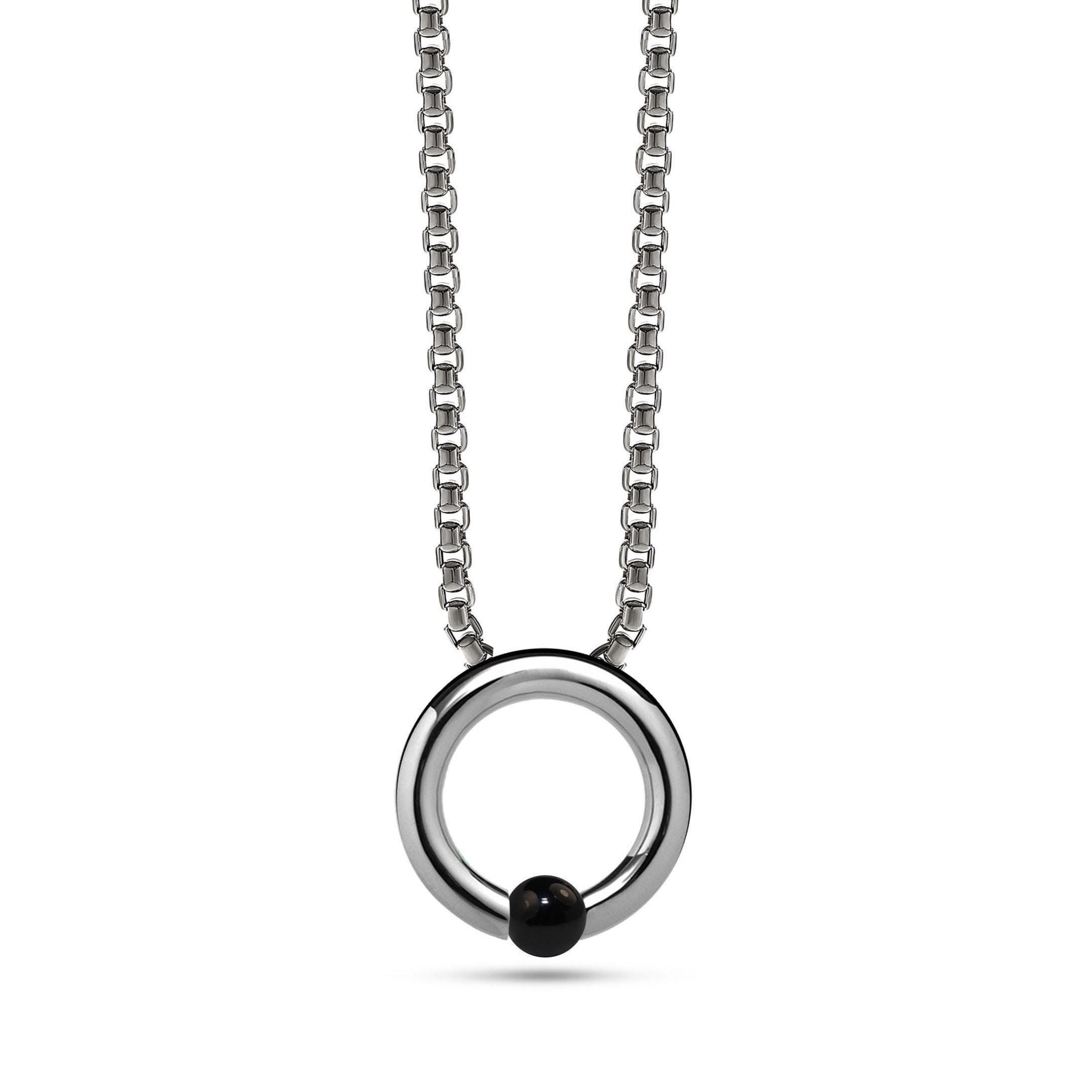 Sleek, sculptural, and effortlessly refined—the LUNA necklace embodies contemporary elegance. Handcrafted in premium 316L stainless steel, its flawless circular tubular frame cradles a Black Onyx sphere, tension-set to appear as if floating in mid-air. The polished finish catches the light with a subtle radiance, while the clean, architectural lines make it a timeless statement piece. Customizable in chain or cord, and length, LUNA is made for those who value artistry, precision, and enduring style. Earrings shown on image are not included.