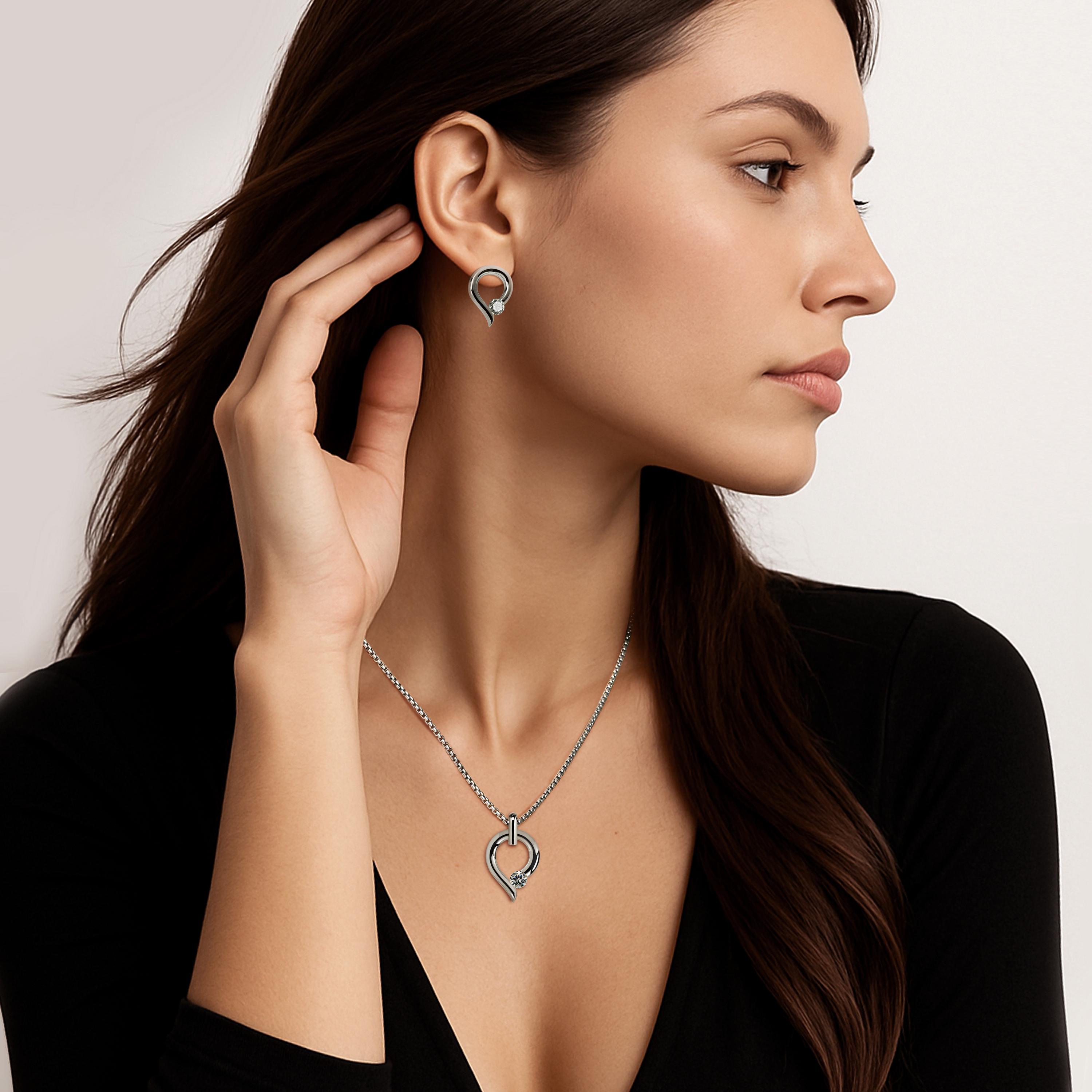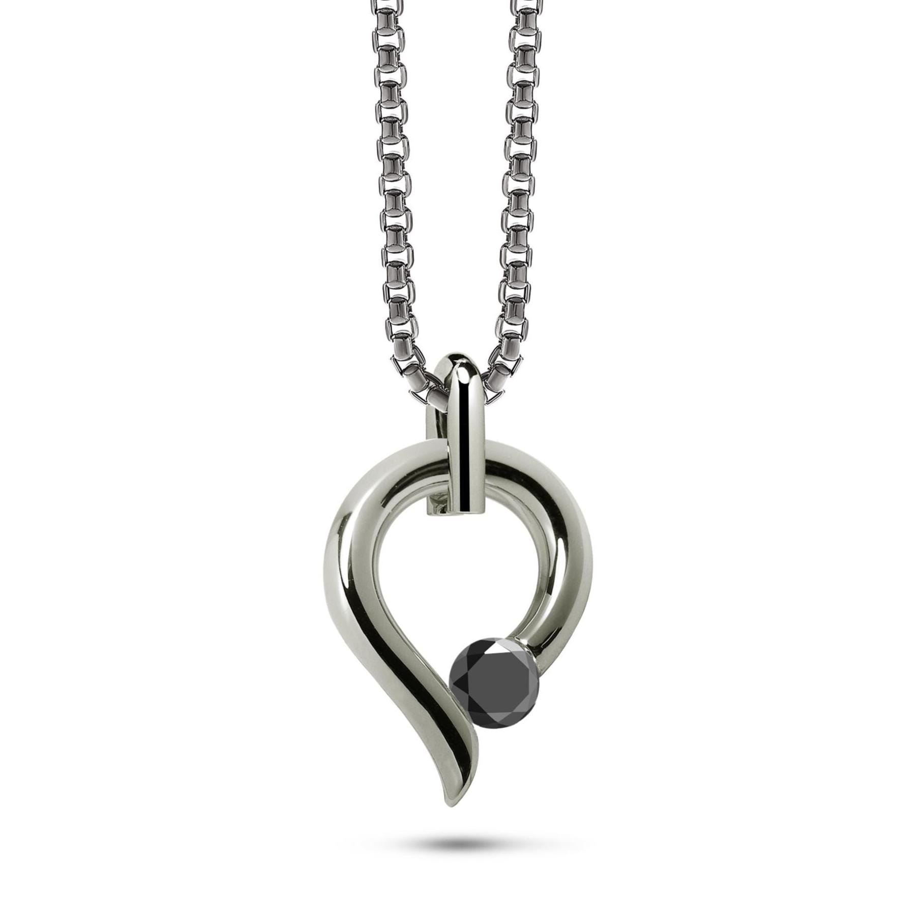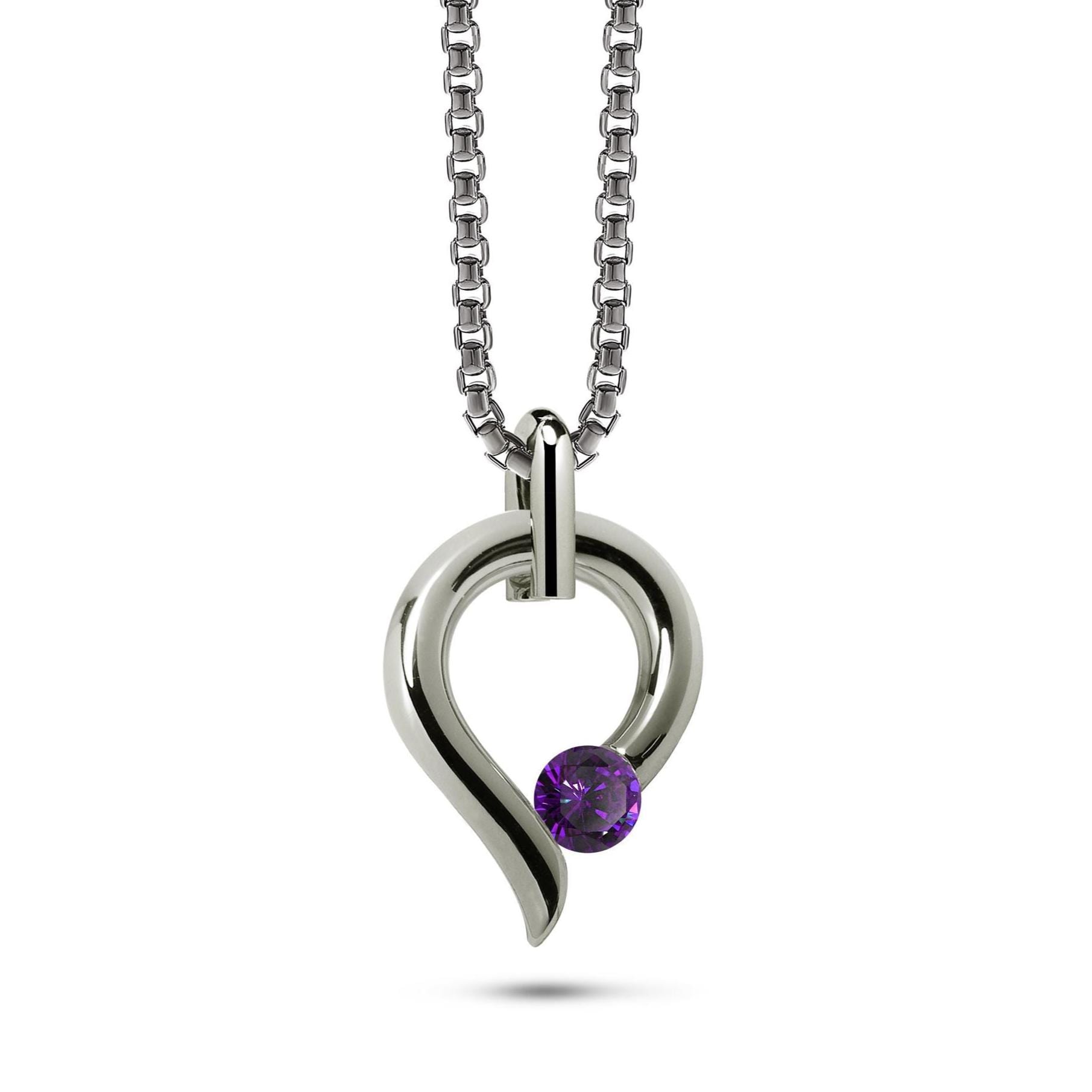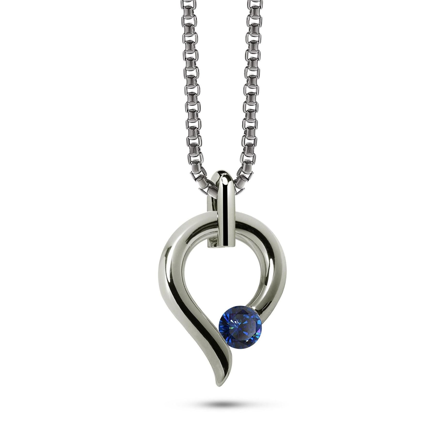This elegant pendant reimagines the classic teardrop silhouette with a contemporary twist. Crafted from polished, hypoallergenic 316 stainless steel, the tubular frame suspends a brilliant-cut gemstone—securely held by tension—for an arresting visual effect that appears to float within the metal. The off-center placement of the gem creates dynamic light play and a subtle architectural charm.