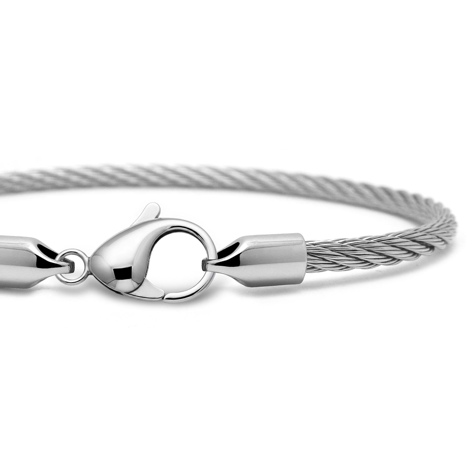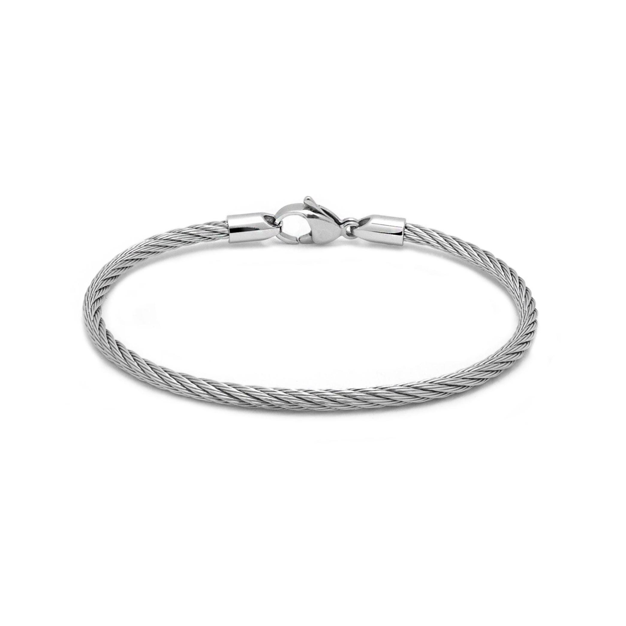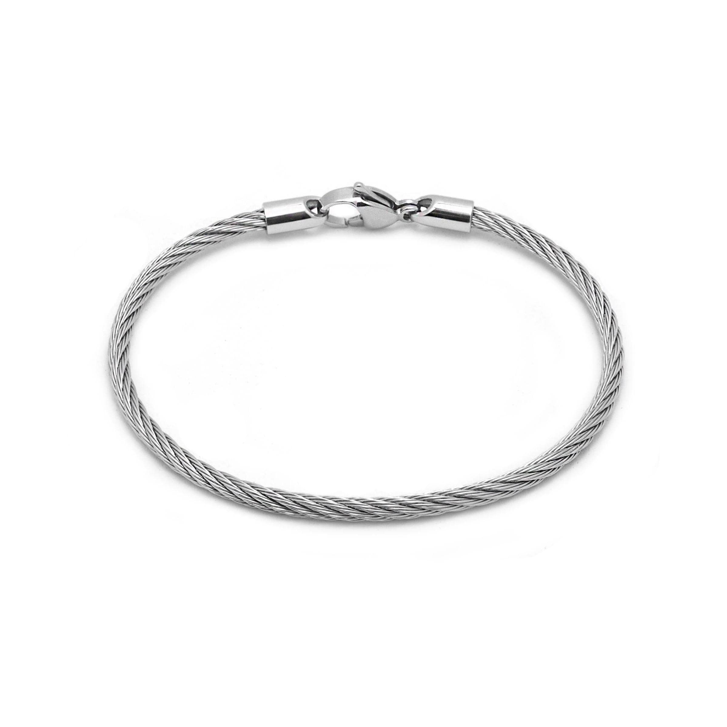 Engineered for durability and minimalist appeal, this Cable Bracelet is built around an authentic, high-tensile stainless steel wire rope. This highly refined sculptural piece is not a twisted facsimile; the core of this piece is a genuine industrial cable, meticulously constructed from dozens of individual, finely spun stainless steel wires tightly woven together. This complex structure provides both superior flexibility and a superlative, radiant luster as it catches the light—a depth of brilliance that solid metal cannot achieve.