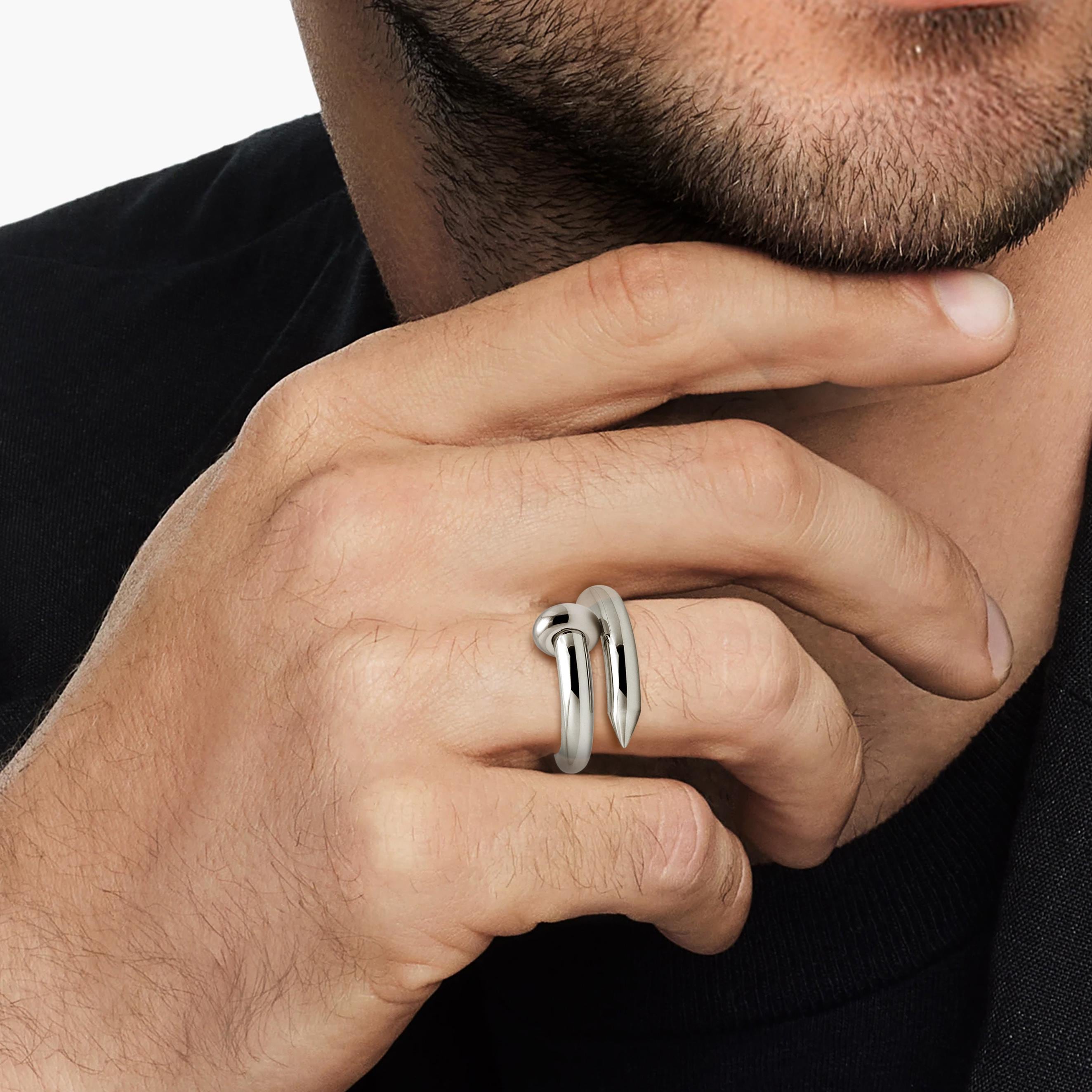 Embrace modern sophistication with our striking unisex Nail Head Ring, a bold take on an iconic design. Crafted from premium polished stainless steel, this ring features a smooth, continuous band that elegantly curves around the finger, culminating in a distinctive nail head at one end and a sharp, tapered nail tip at the other.