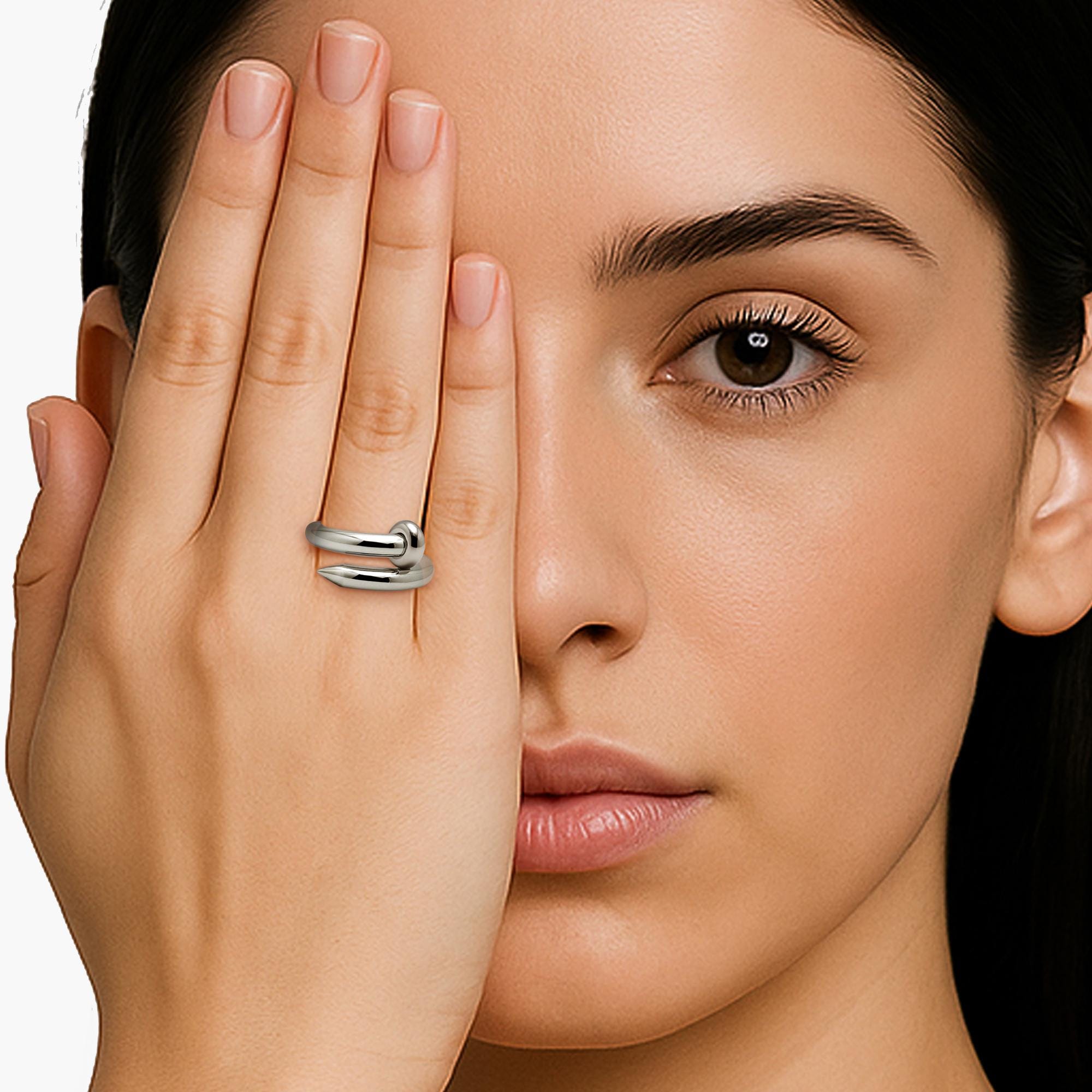 Embrace modern sophistication with our striking unisex Nail Head Ring, a bold take on an iconic design. Crafted from premium polished stainless steel, this ring features a smooth, continuous band that elegantly curves around the finger, culminating in a distinctive nail head at one end and a sharp, tapered nail tip at the other.
