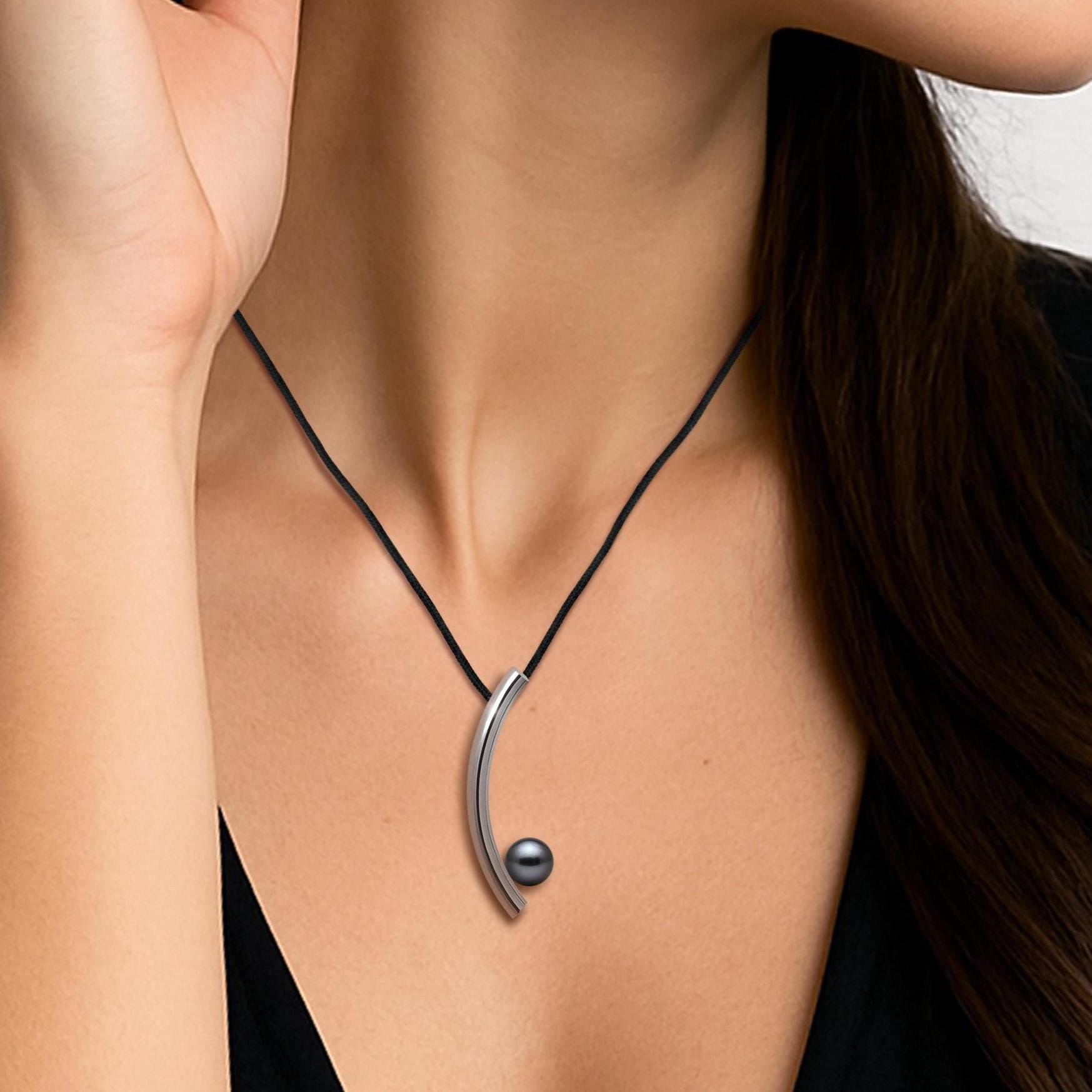 Elevate your everyday aesthetic with a piece of structural artistry. Part of our iconic CURVE Collection, this vertical pendant represents the perfect fusion of industrial strength and organic grace. We have meticulously engineered a sleek, tubular curve in high-polished stainless steel to act as a modern frame for a singular, 8mm Tahitian-style black pearl.