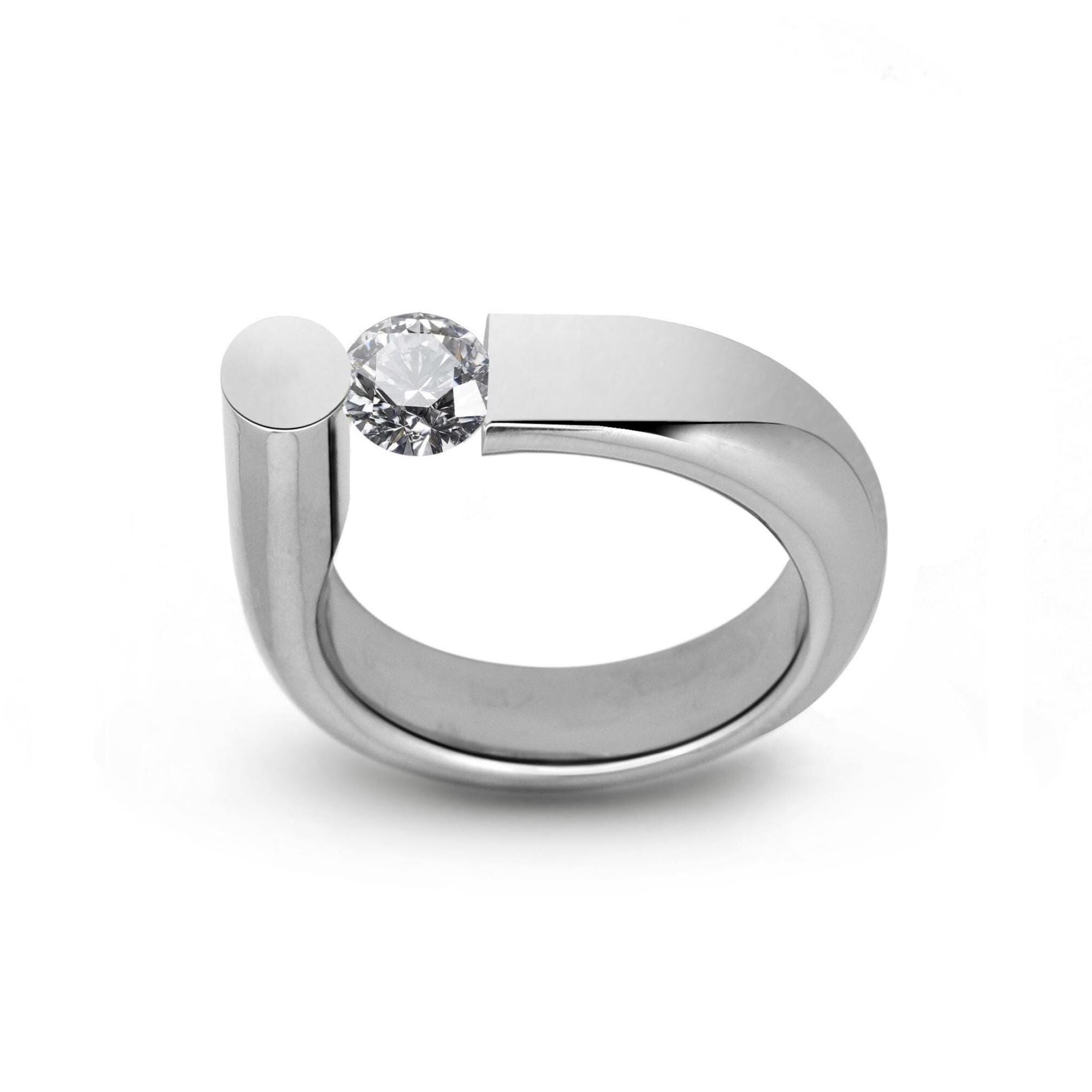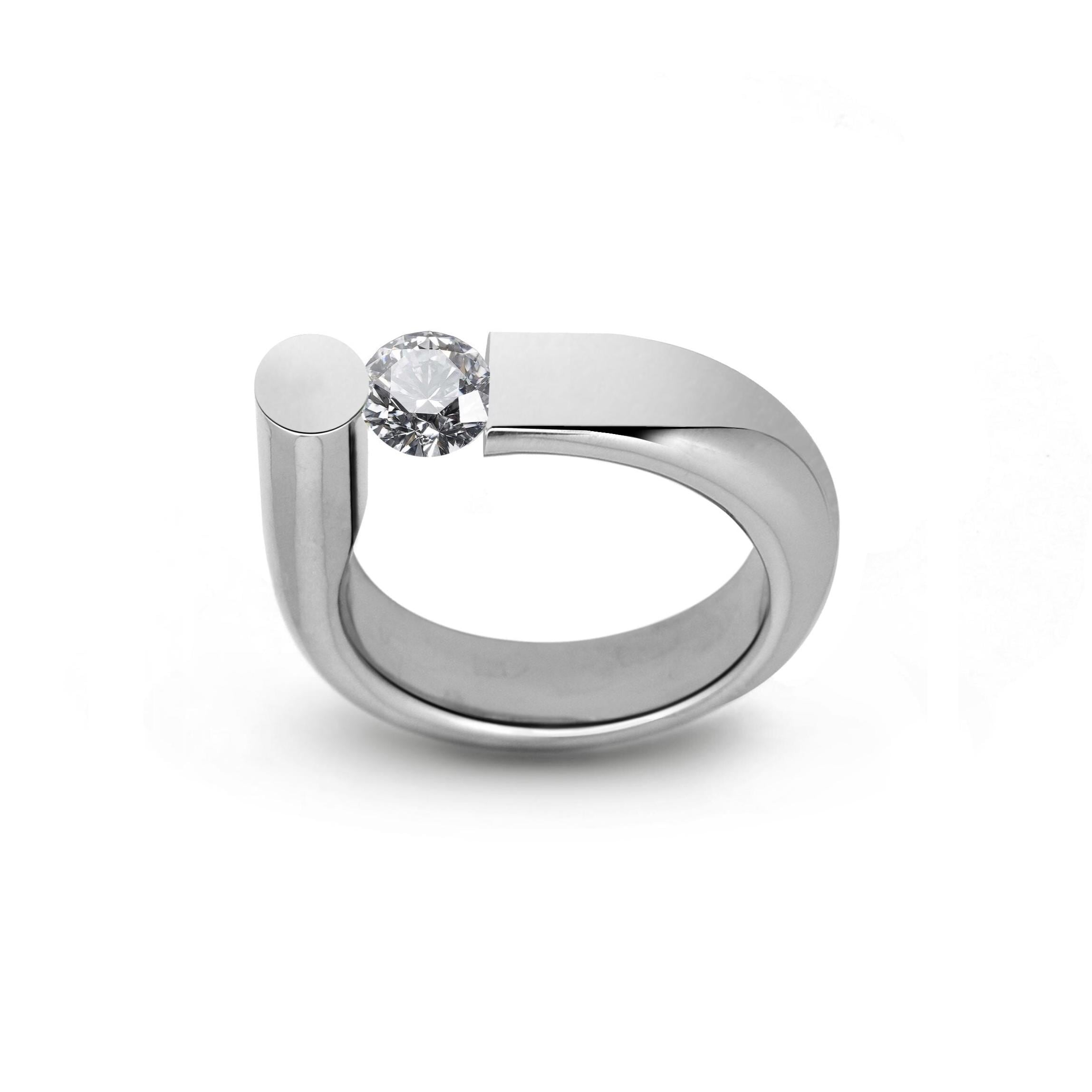 Taormina PORTANTE Ring is a bold expression of refined minimalism and expert craftsmanship, handcrafted with Taormina’s signature commitment to architectural balance and modern design. This sculptural ring features a dynamic transition from soft, rounded curves to clean, flat geometry—an intentional contrast that captures movement and tension within a single continuous form. A brilliant 5mm white sapphire is tension-set off-center, appearing to float effortlessly between the diverging ends of the band, adding visual intrigue and refined elegance. The PORTANTE ring embodies Taormina’s signature fusion of modern sculpture, masterful technique, and wearable luxury.