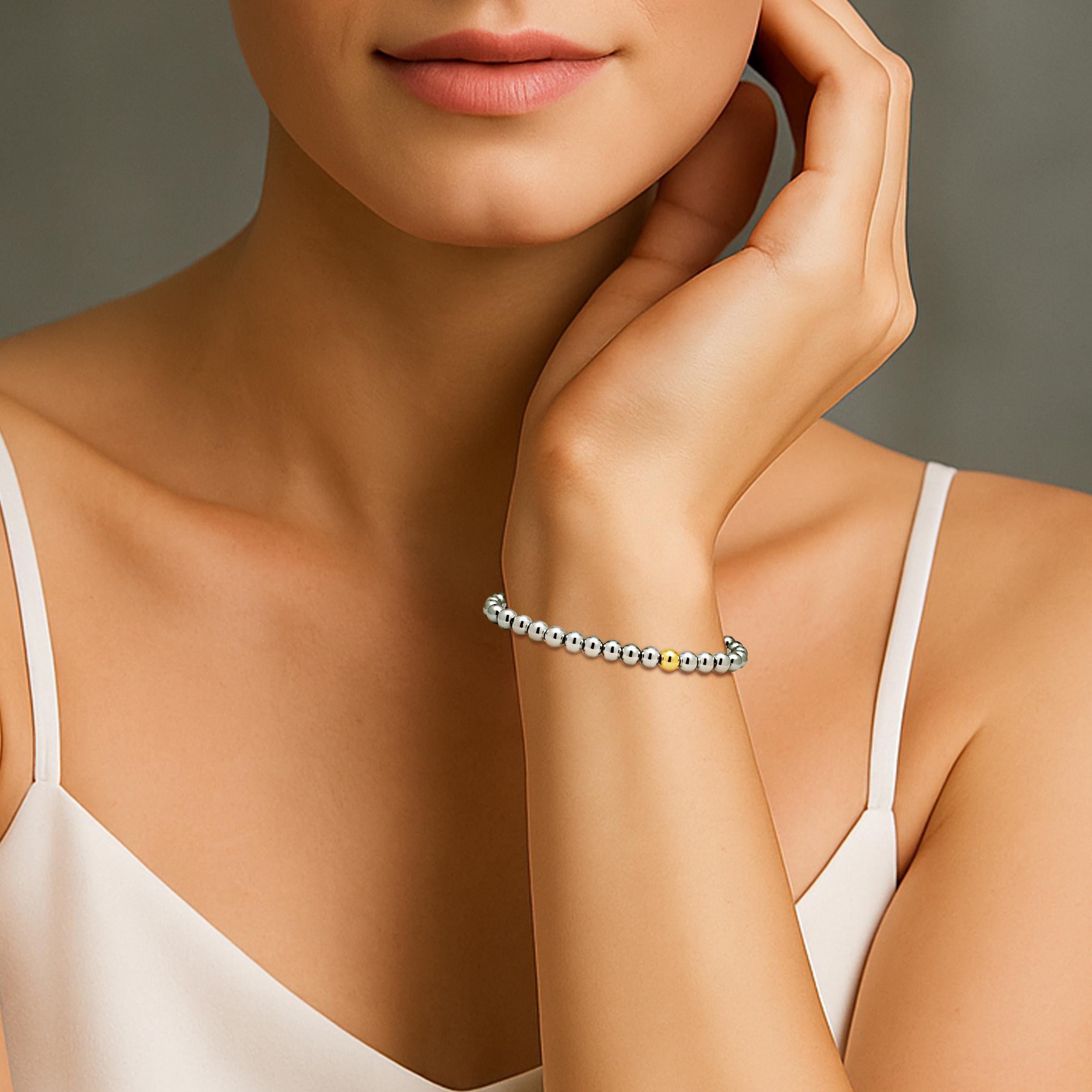 A refined expression of understated luxury, this bracelet is composed of 5mm polished stainless steel beads, seamlessly strung on an ultra-fine internal steel chain for both flexibility and strength.