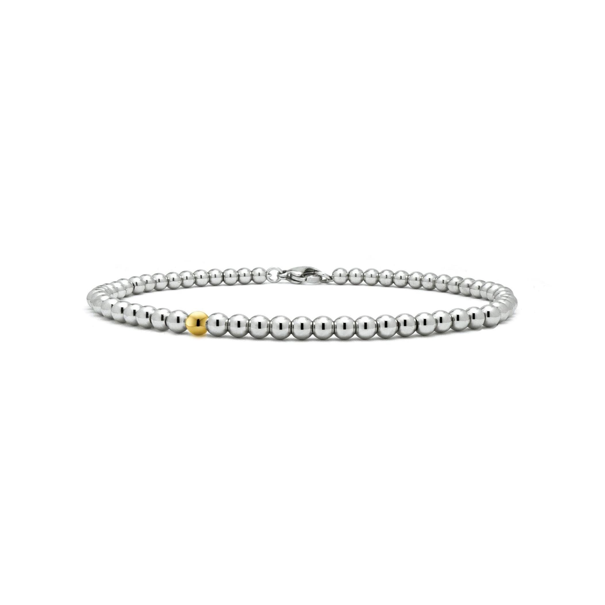 At its center, a sleek accent bead—available in either gold or matching polished steel—offers a subtle yet distinctive contrast, staying true to the brand’s clean, architectural aesthetic.