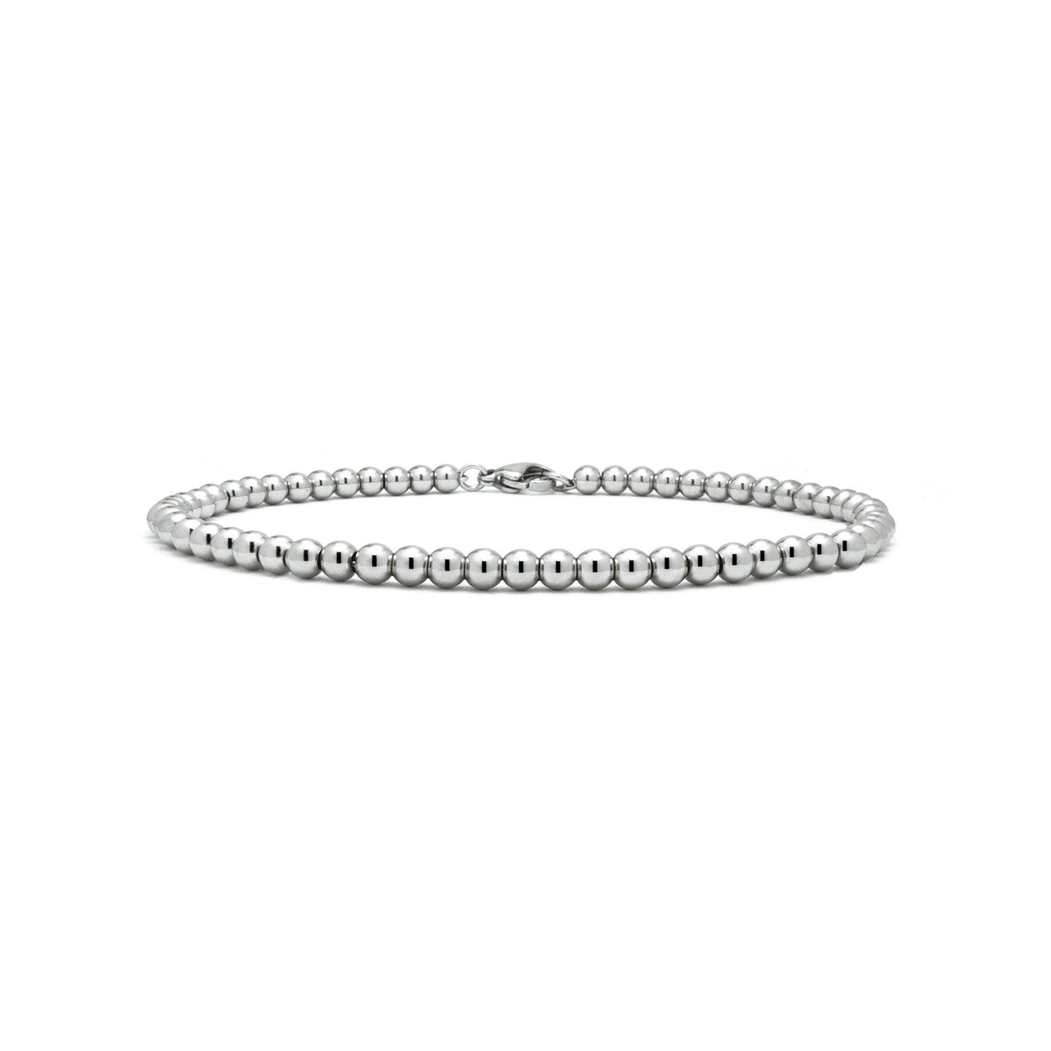 A refined expression of understated luxury, this bracelet is composed of 3mm polished stainless steel beads, seamlessly strung on an ultra-fine internal steel chain for both flexibility and strength.