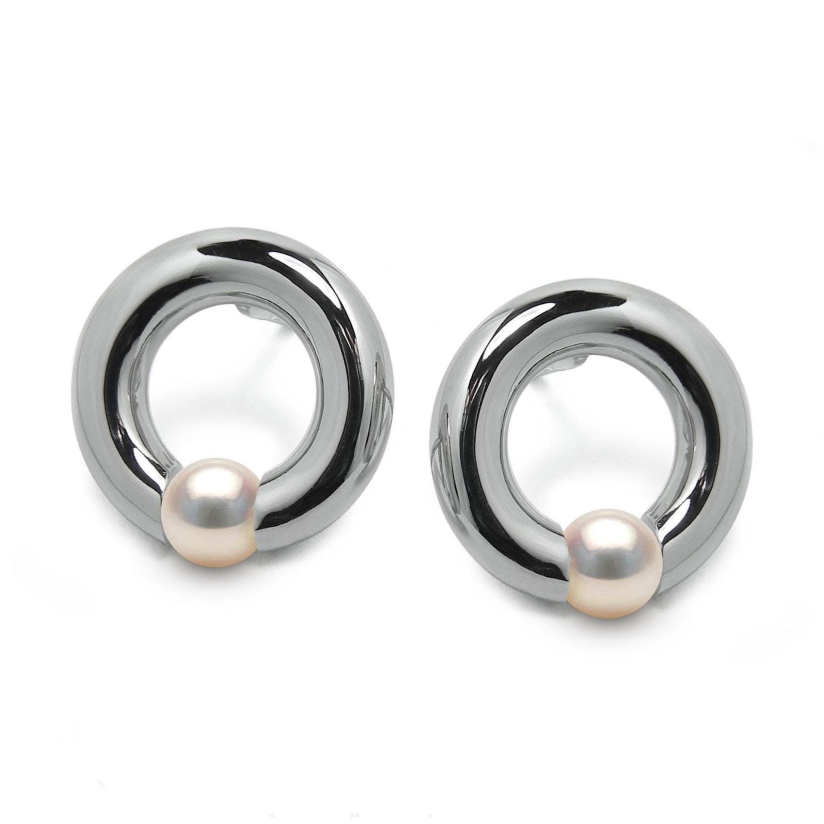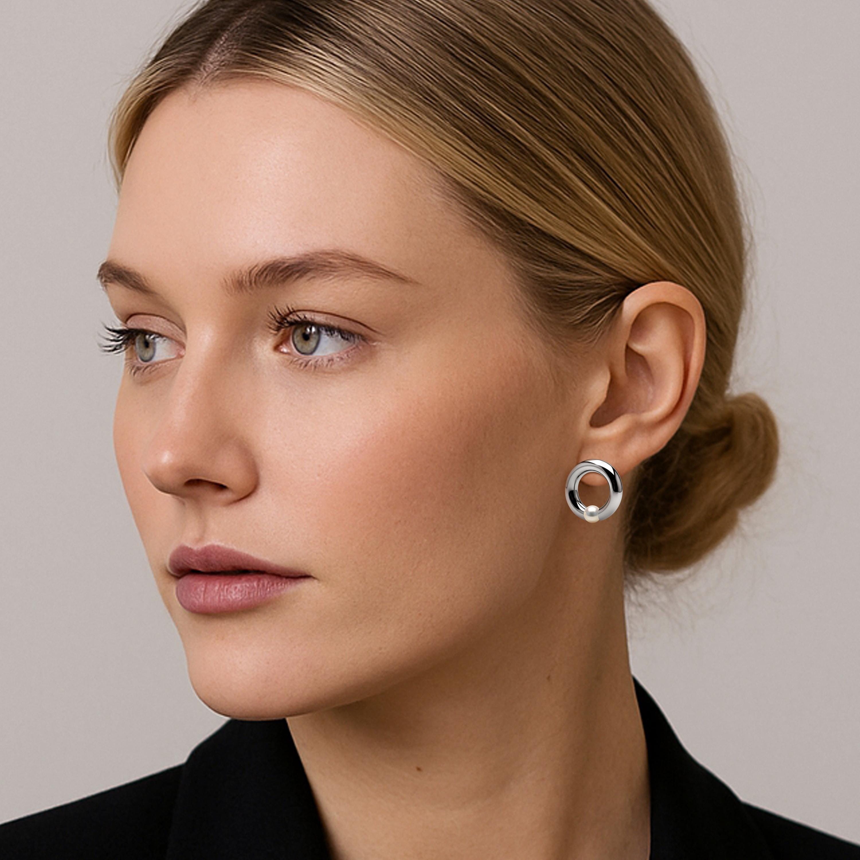 Effortlessly chic and minimalist, these LUNA studs feature a sleek tubular stainless steel circle that frames a radiant 6mm round natural white pearl. Meticulously tension-set at the base of the hoop, the gem appears to float—surrounded by light, accentuating its full brilliance. The LUNA studs offer a clean, sculptural silhouette that brings a subtle yet striking glow to any look. The pearl’s floating effect within the open hoop draws the eye with understated elegance—perfect for both daily wear and evening style.
